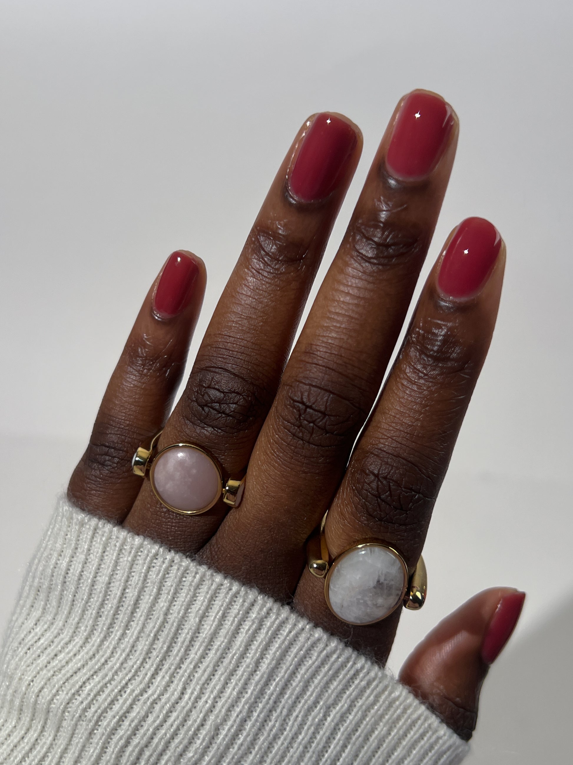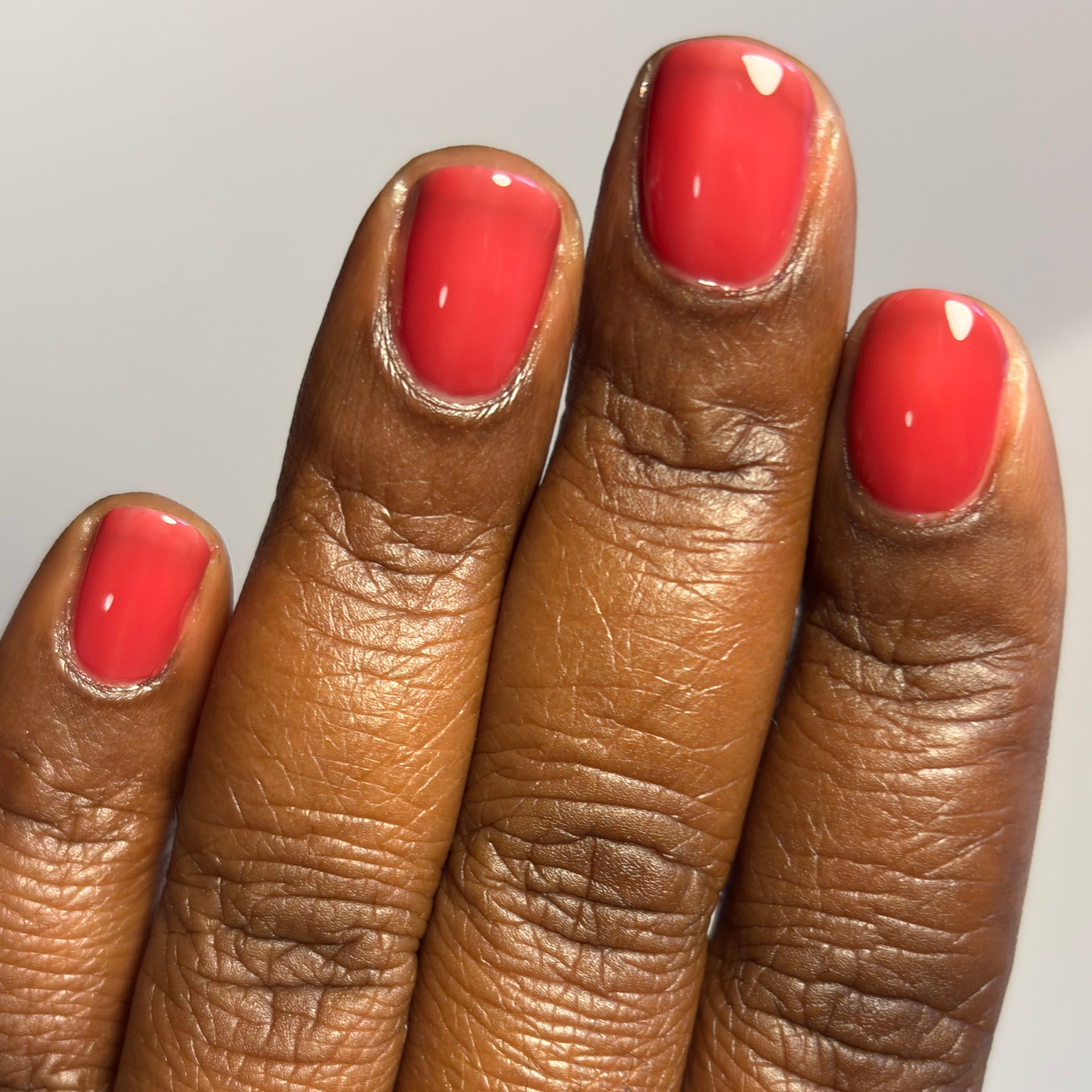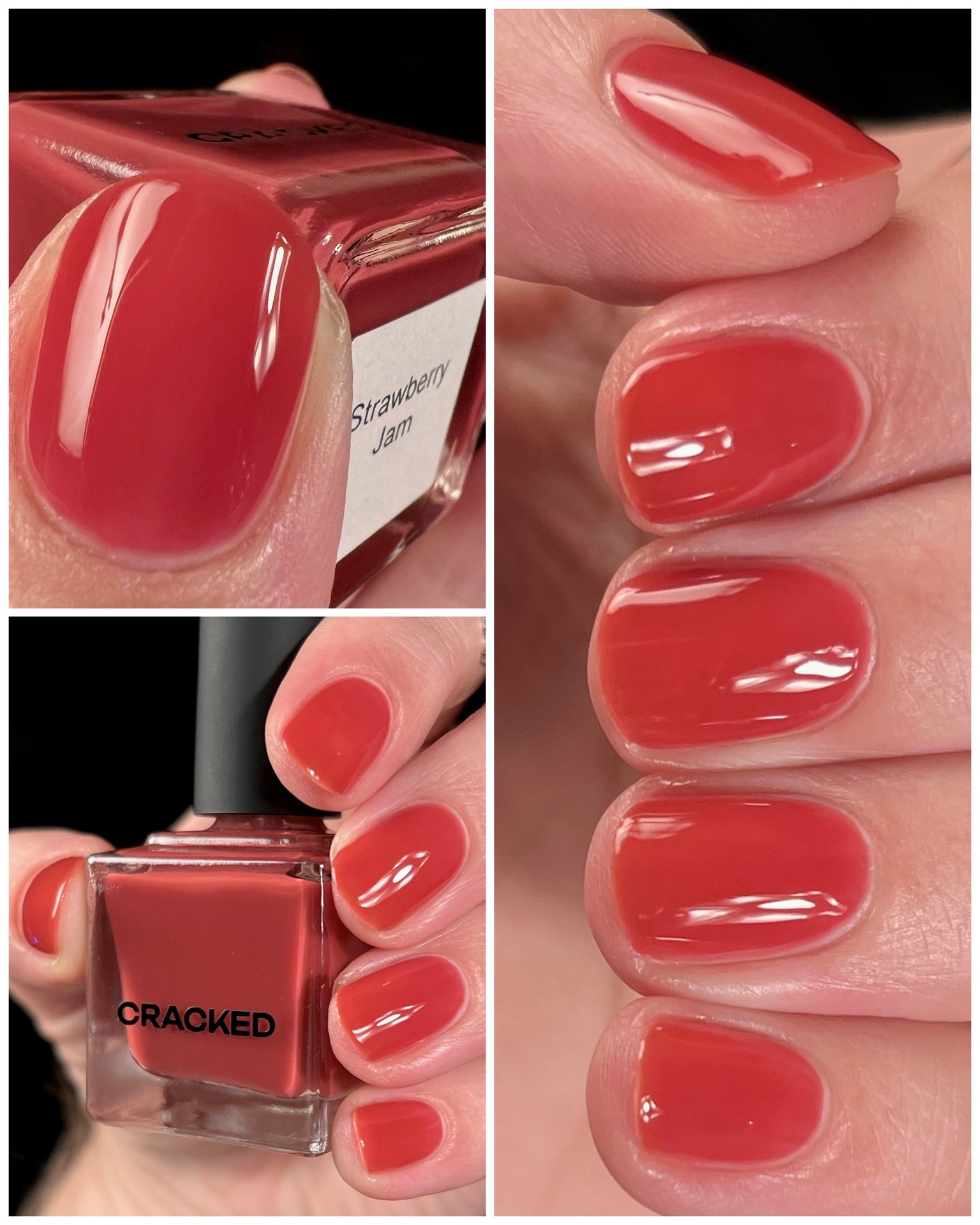 Strawberry Jam is a gorgeous muted strawberry red color. This shade is juicy, very glossy and buildable.