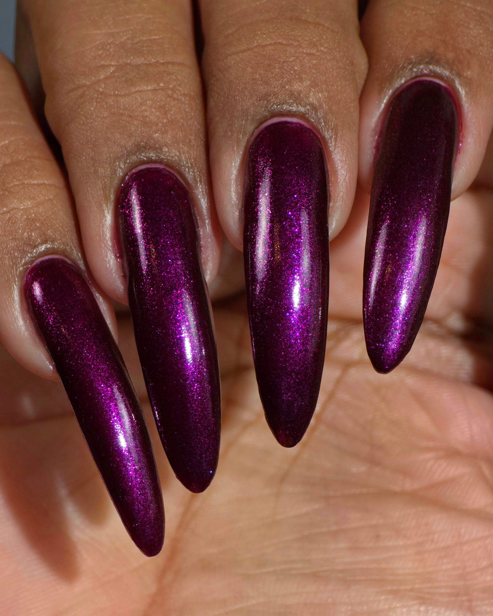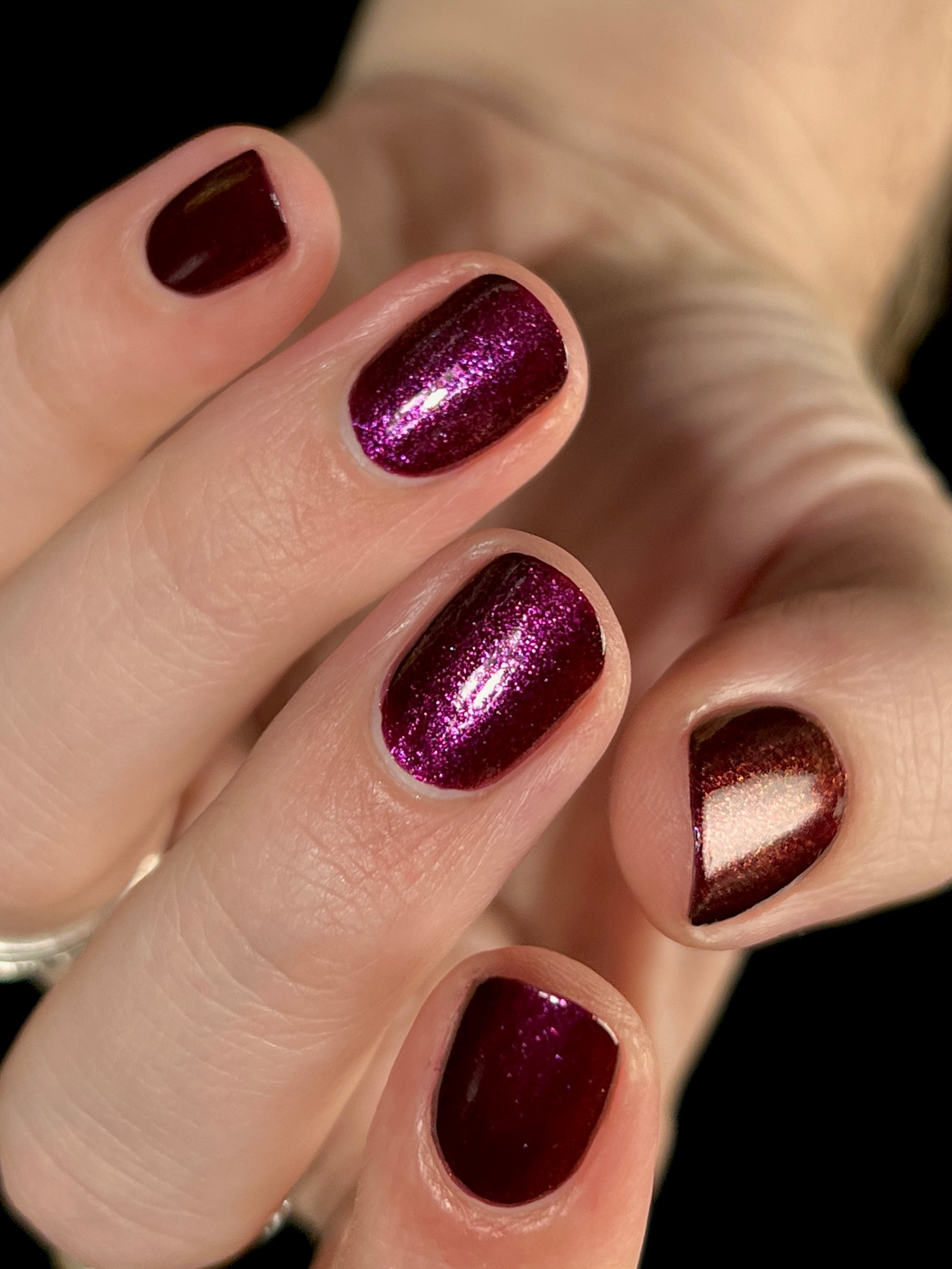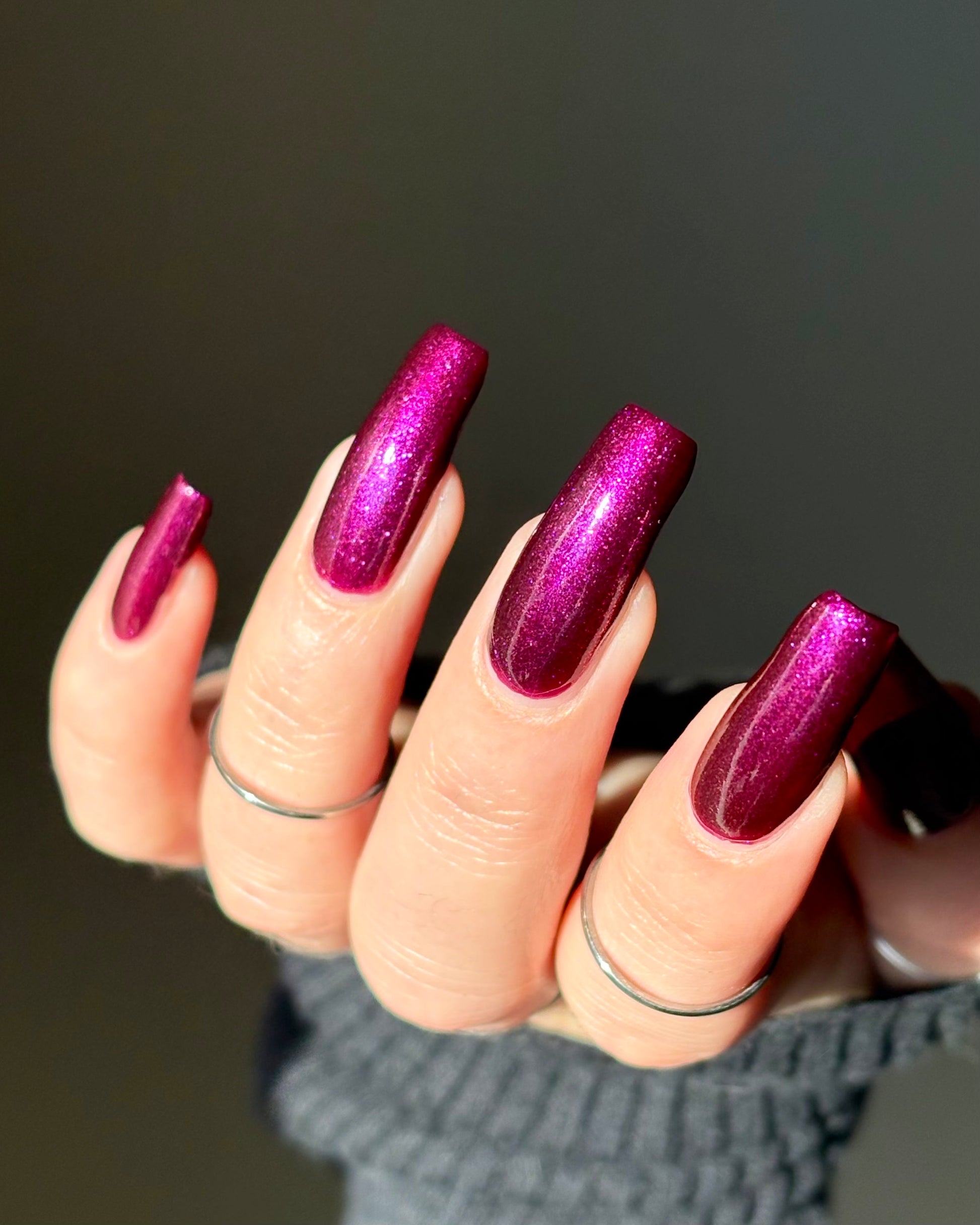 Dive into your feelings with Surging Energies, a deep magenta-purple polish that radiates passion in a glass bottle. This shade is shimmering with purple and soft pink glimmers, this shade captures the intensity of shifting moods during the winter season. Bold and perfect for the PPU Mood Rings and Emotions theme, it’s a great polish for when your inner world is bursting with energy and expression.