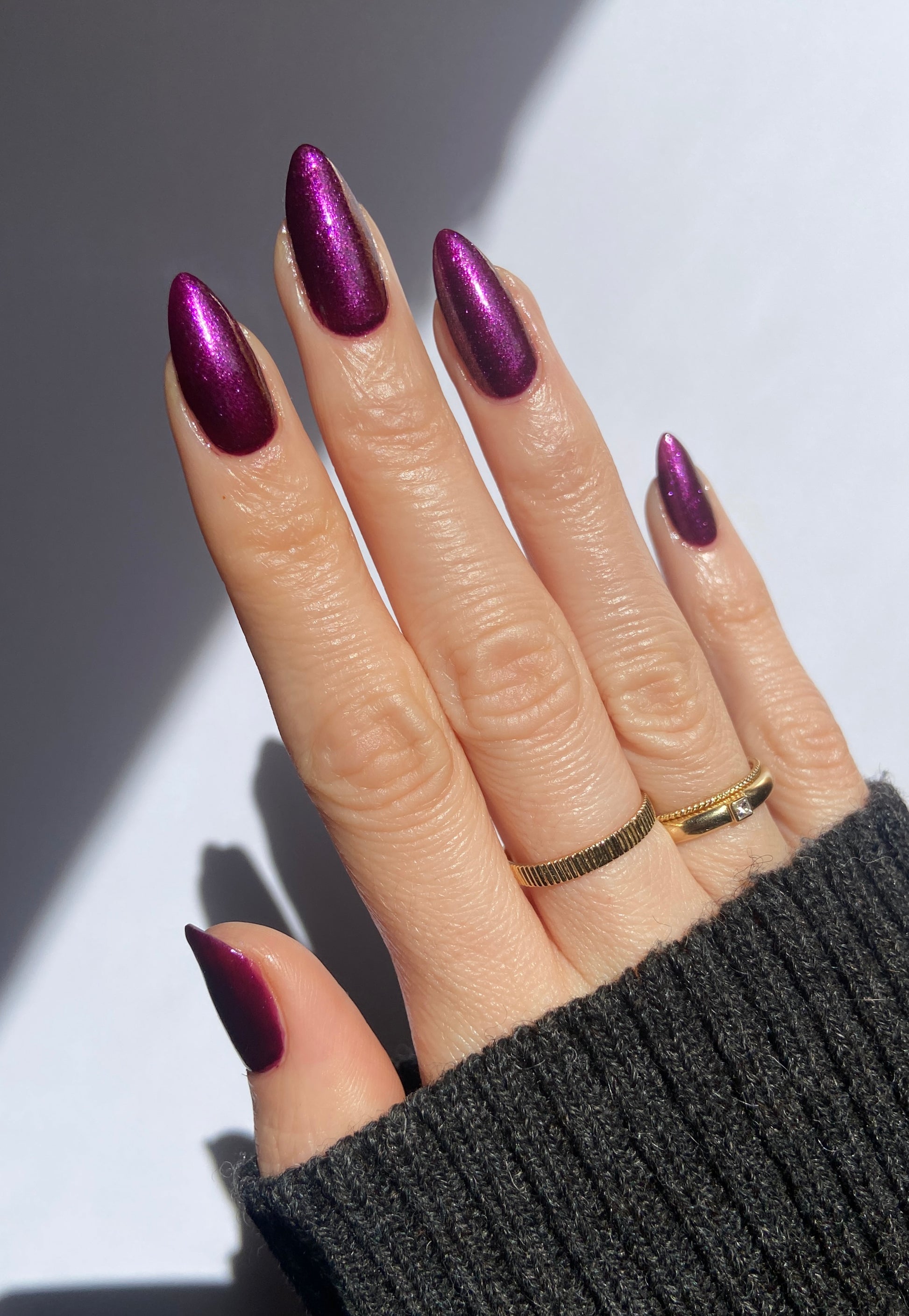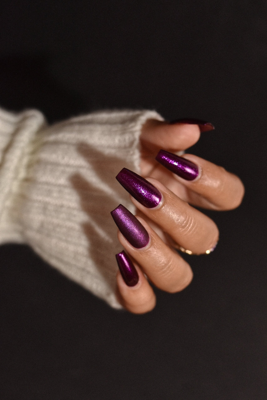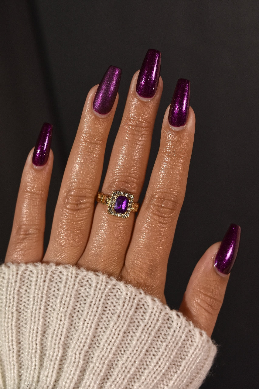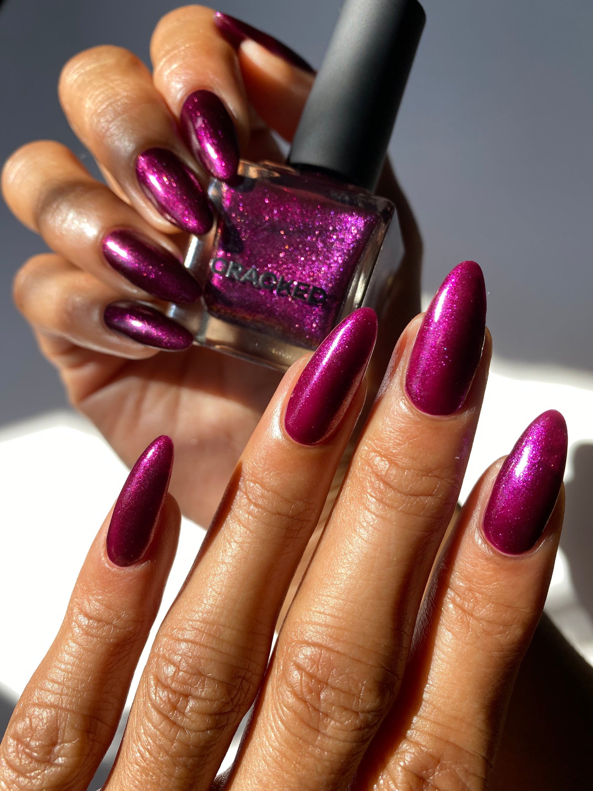 Dive into your feelings with Surging Energies, a deep magenta-purple polish that radiates passion in a glass bottle. This shade is shimmering with purple and soft pink glimmers, this shade captures the intensity of shifting moods during the winter season. Bold and perfect for the PPU Mood Rings and Emotions theme, it’s a great polish for when your inner world is bursting with energy and expression.