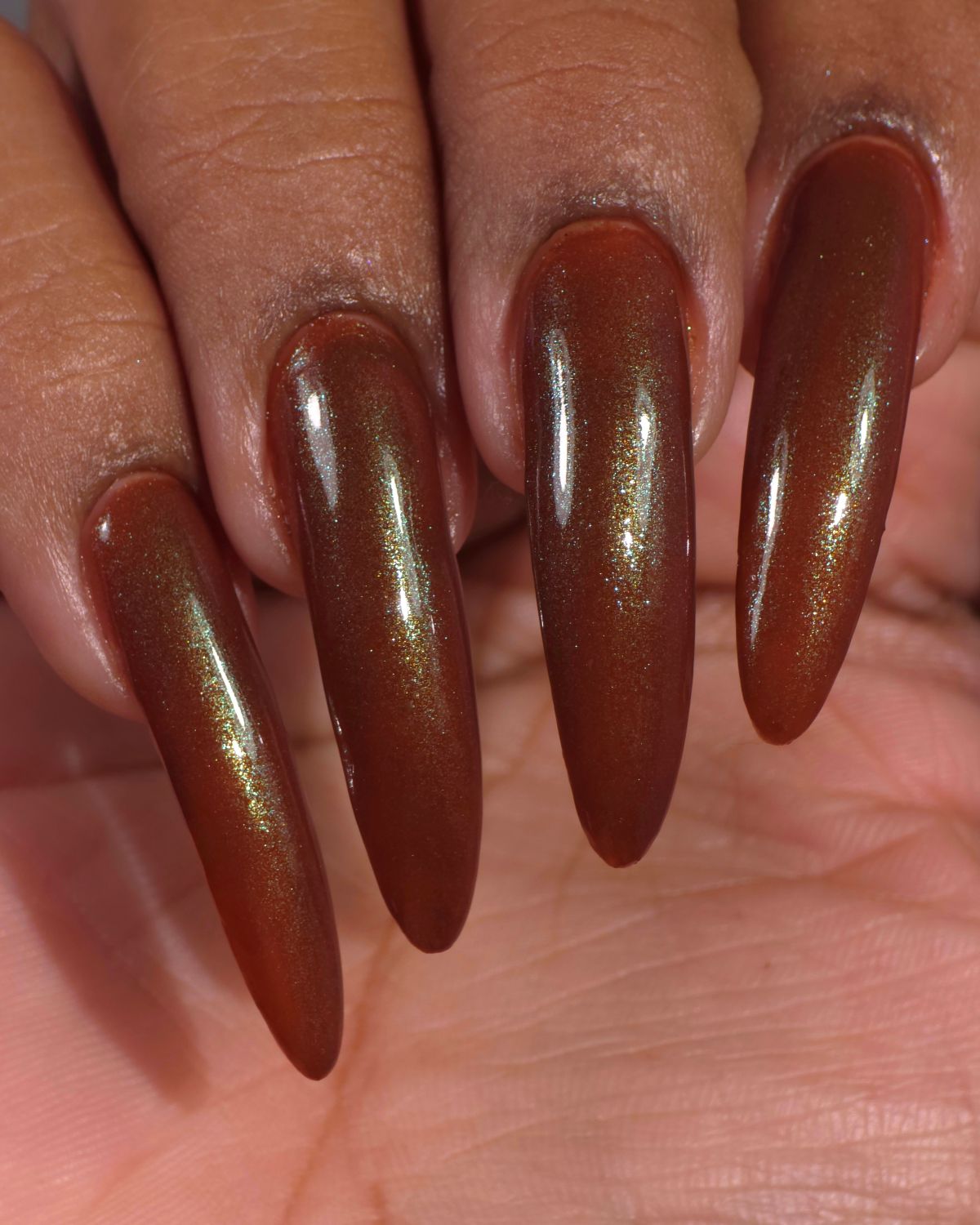 Swamp Sample is our twisted little tribute to the beauty of the bizarre, an exclusive for Little Box of Horrors that celebrates our love for all things prugly. For July’s “Maker’s Choice,” we reached deep into the murky depths and bottled something suspiciously stunning. This shade is off-kilter, unsettling, and undeniably gorgeous in its own weird way. A little mud, a little magic, and a whole lot of "what is that color?" Sometimes, it claws its way out of the swamp and says, “Try me.”