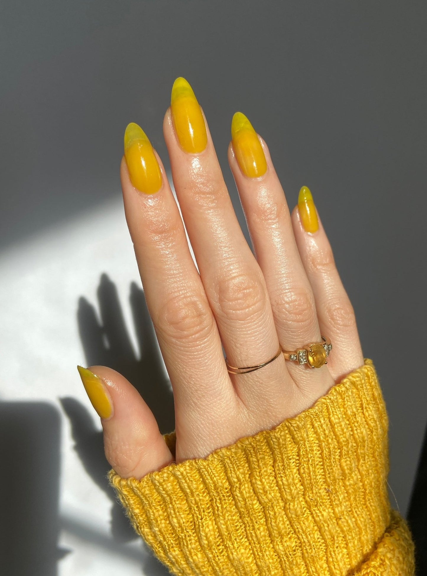 Pro Tip - The fun thing with jelly is it looks squishy and subdued in one coat but the more you build the richer the color becomes. With any jelly, if you are looking to hide your visible nail line, try using a ridge filler or blurring base coat underneath.