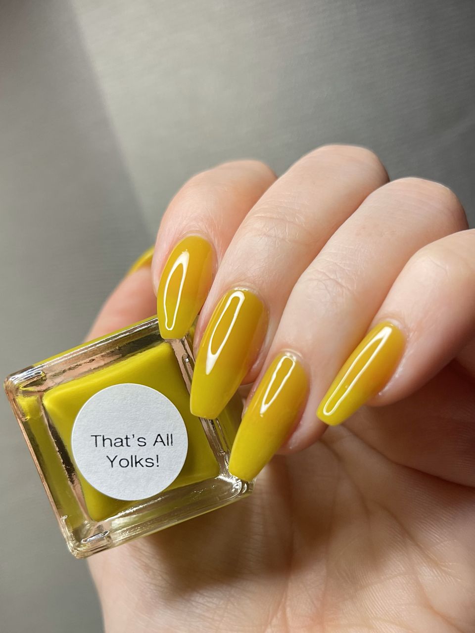 That's All Yolks! is described as a golden rod yellow jelly with an olive undertone.