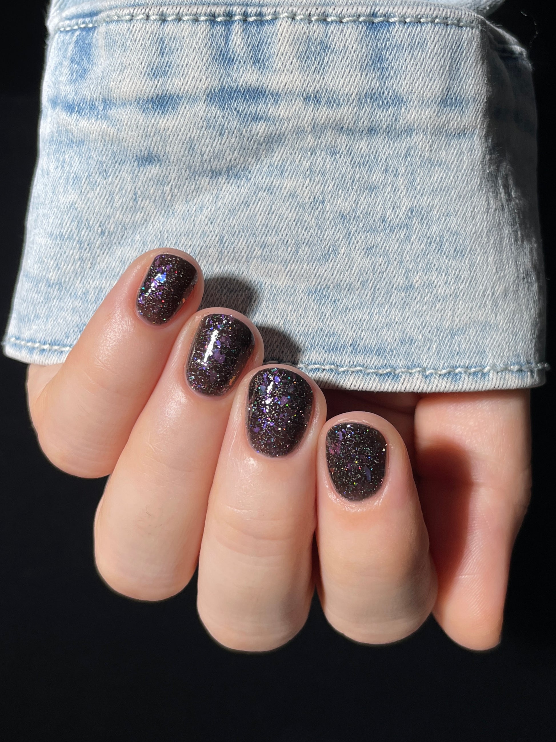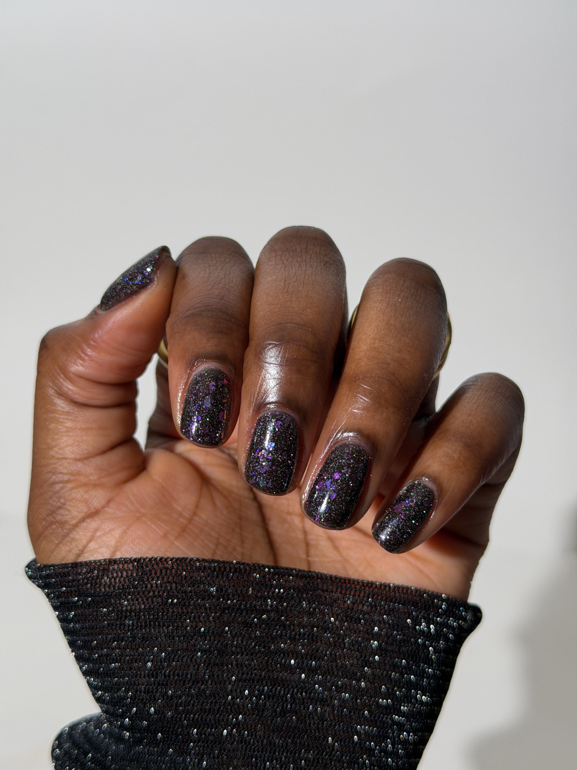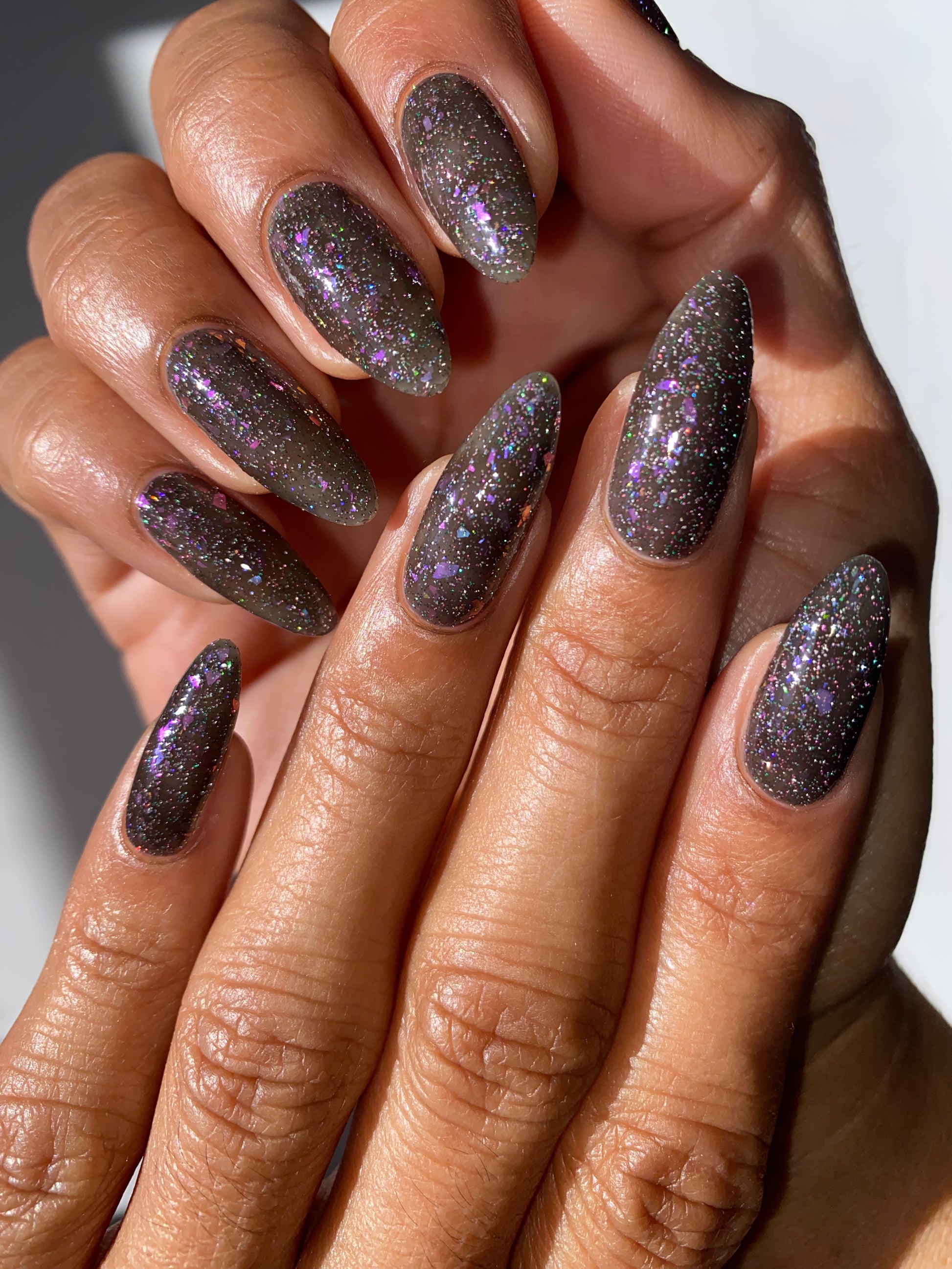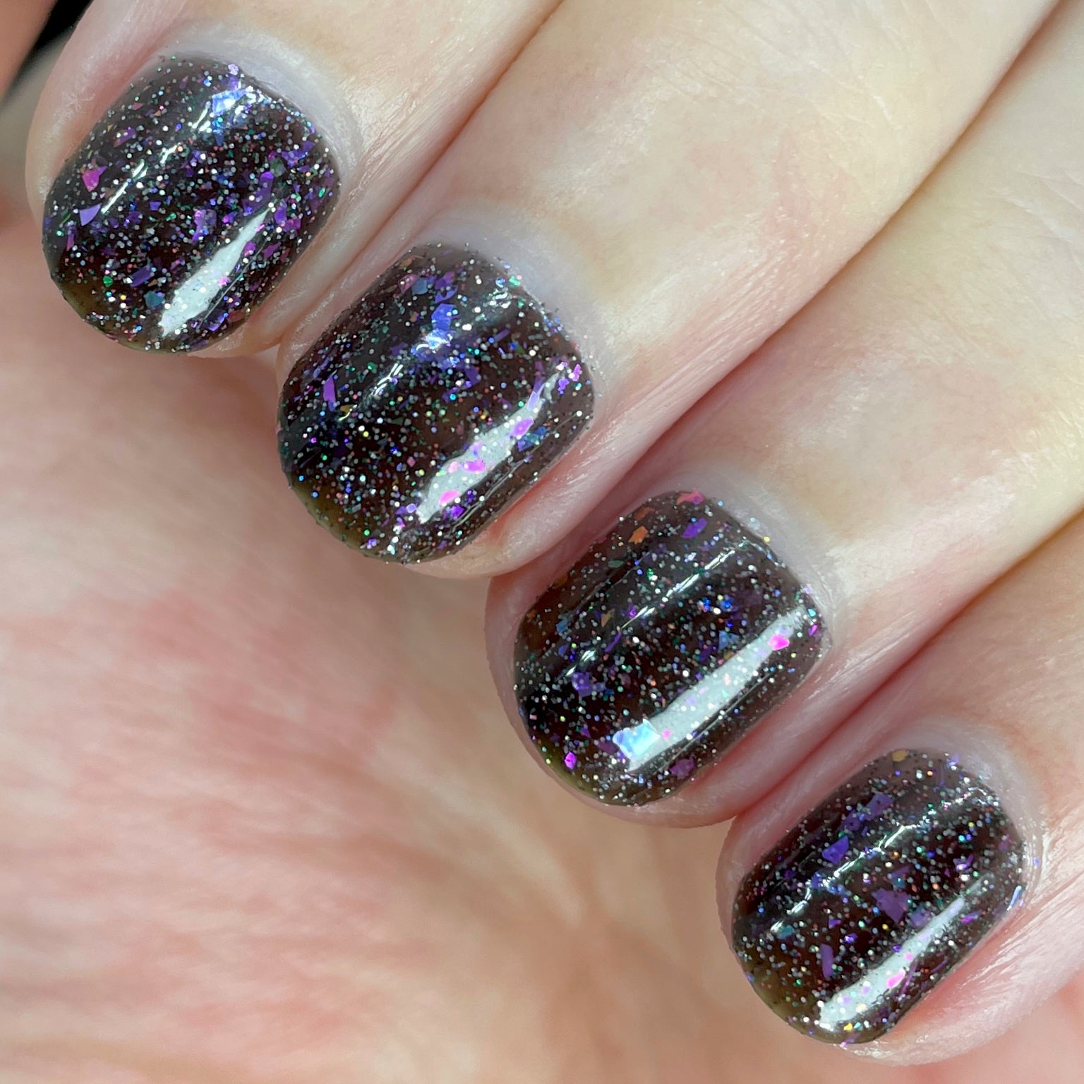 That's How The Light Gets In is a black jelly with pink, green and purple iridescent flakies and silver reflective glitters. Once one door closes, another opens. Find beauty and strength in our imperfections and not barriers.