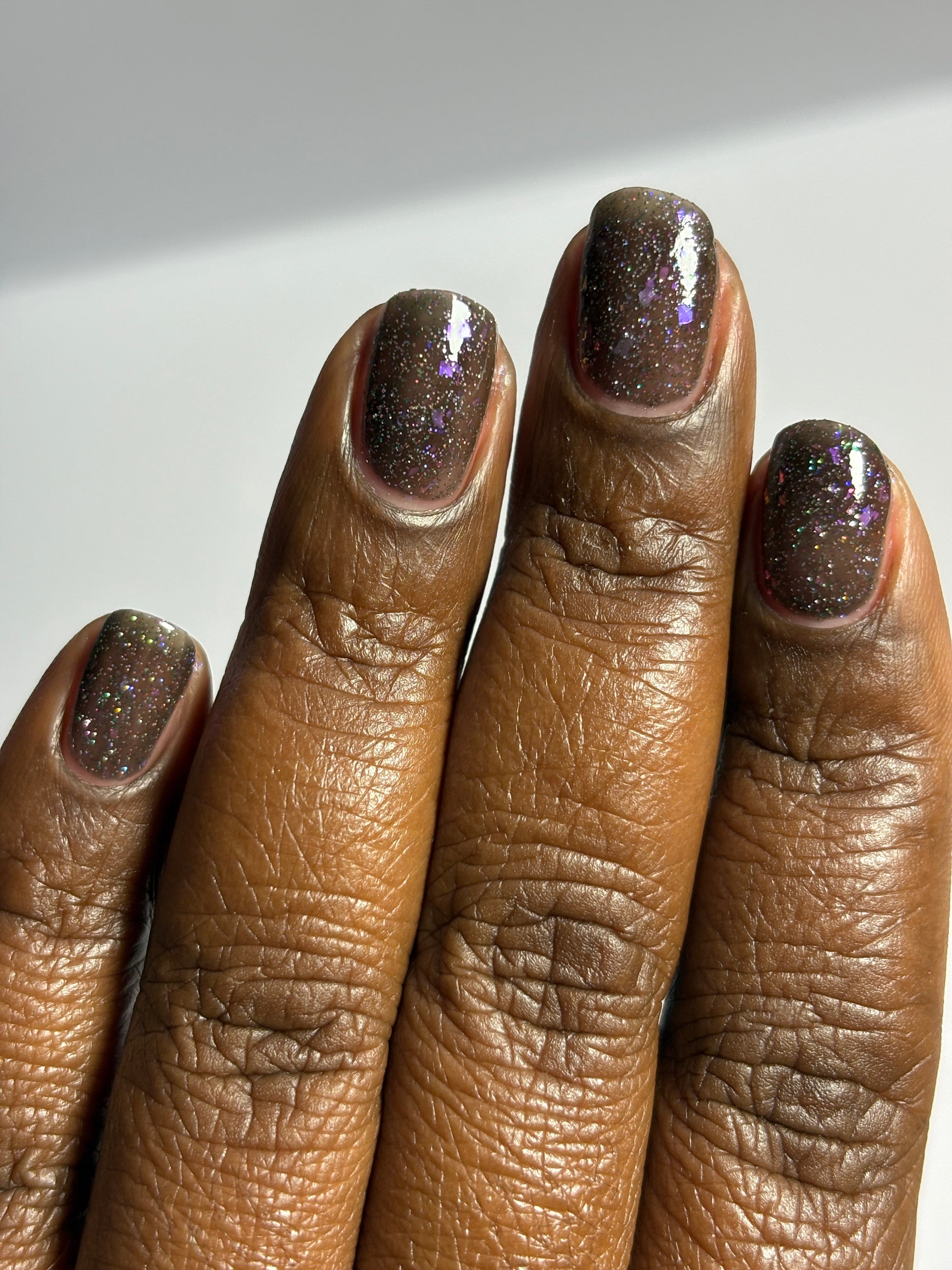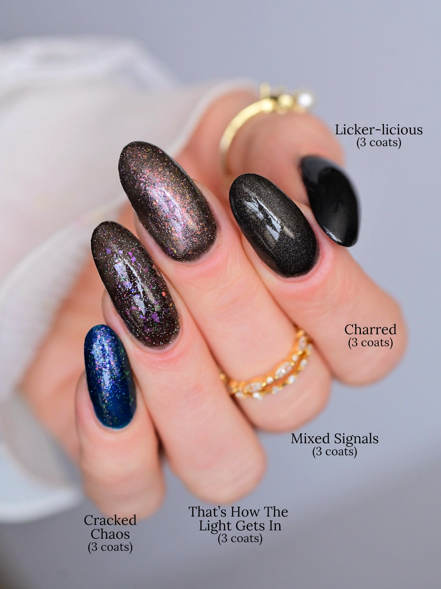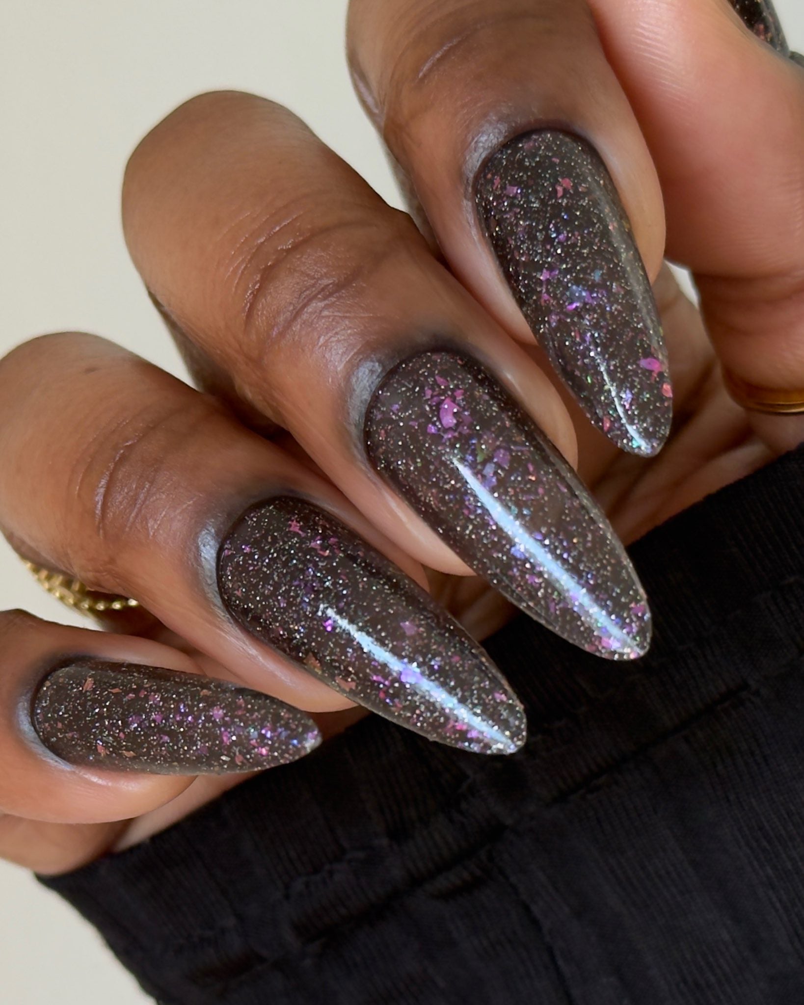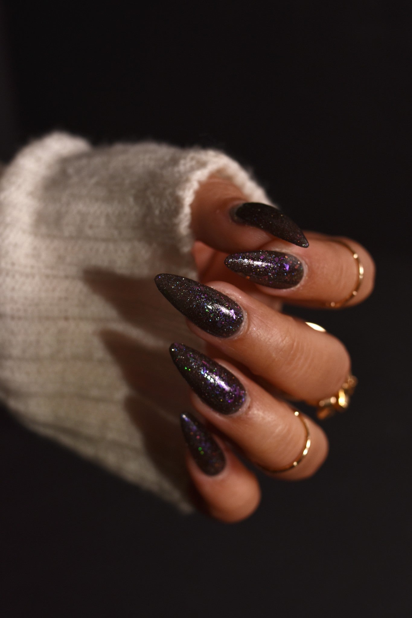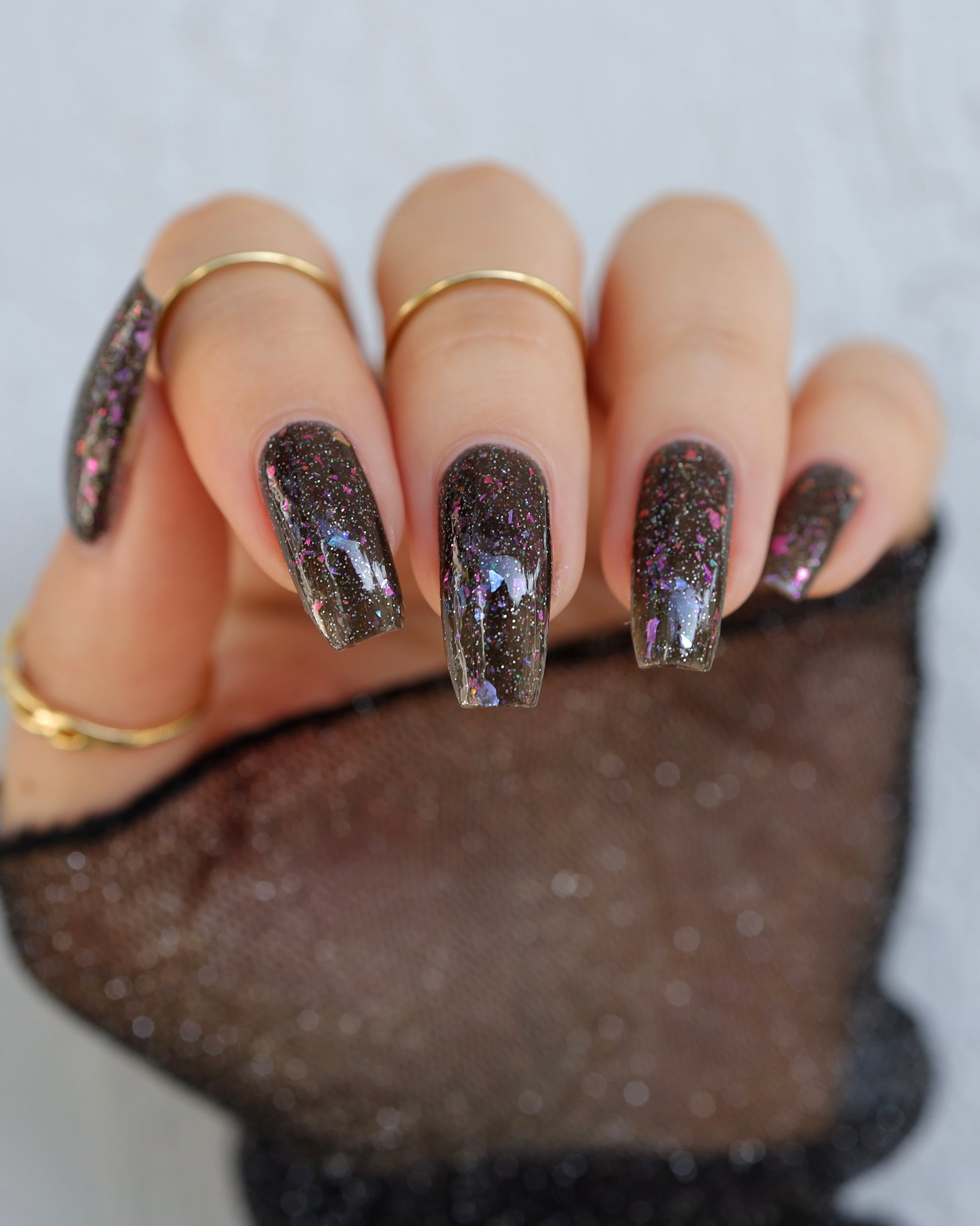 That's How The Light Gets In is a black jelly with pink, green and purple iridescent flakies and silver reflective glitters. Once one door closes, another opens. Find beauty and strength in our imperfections and not barriers.