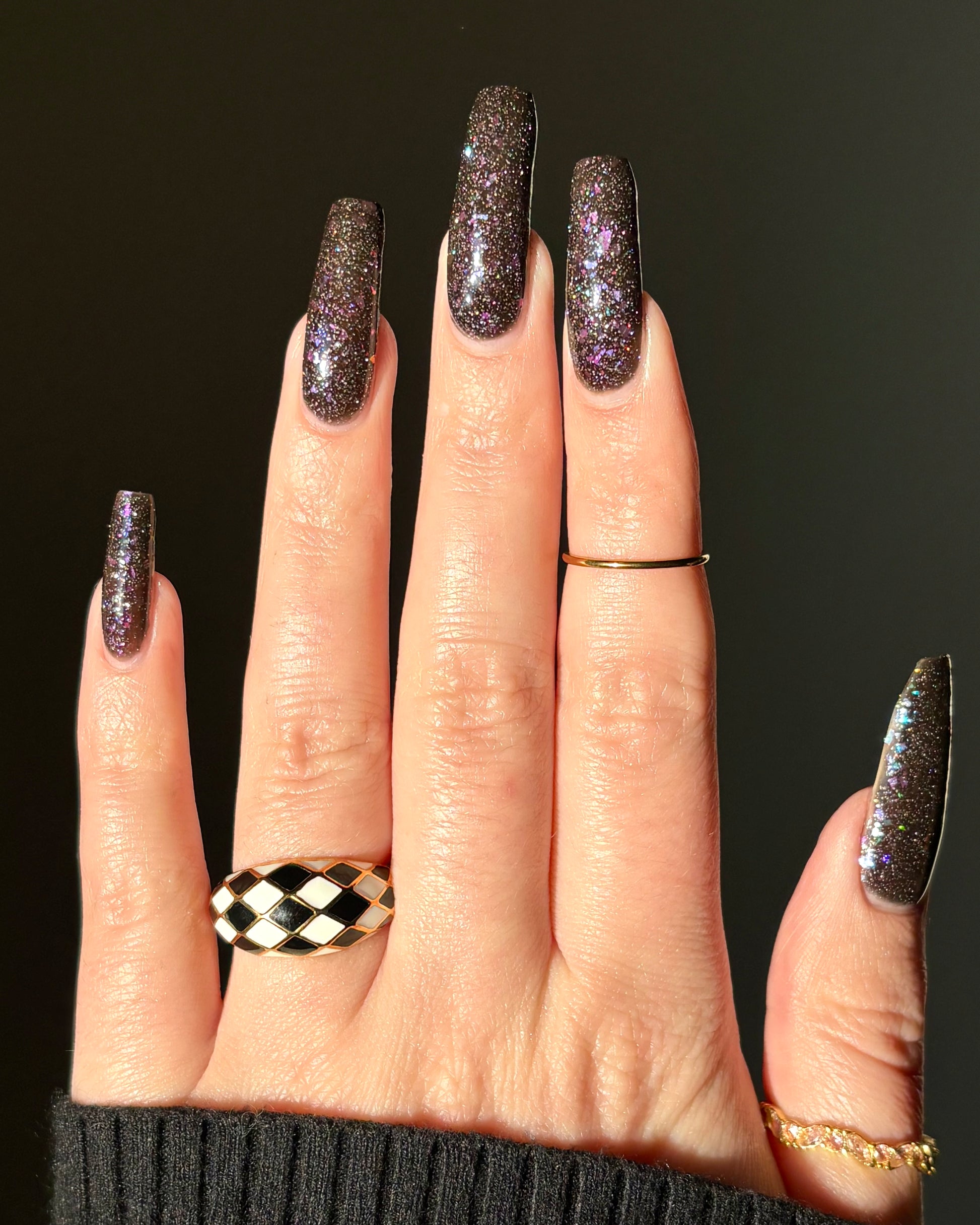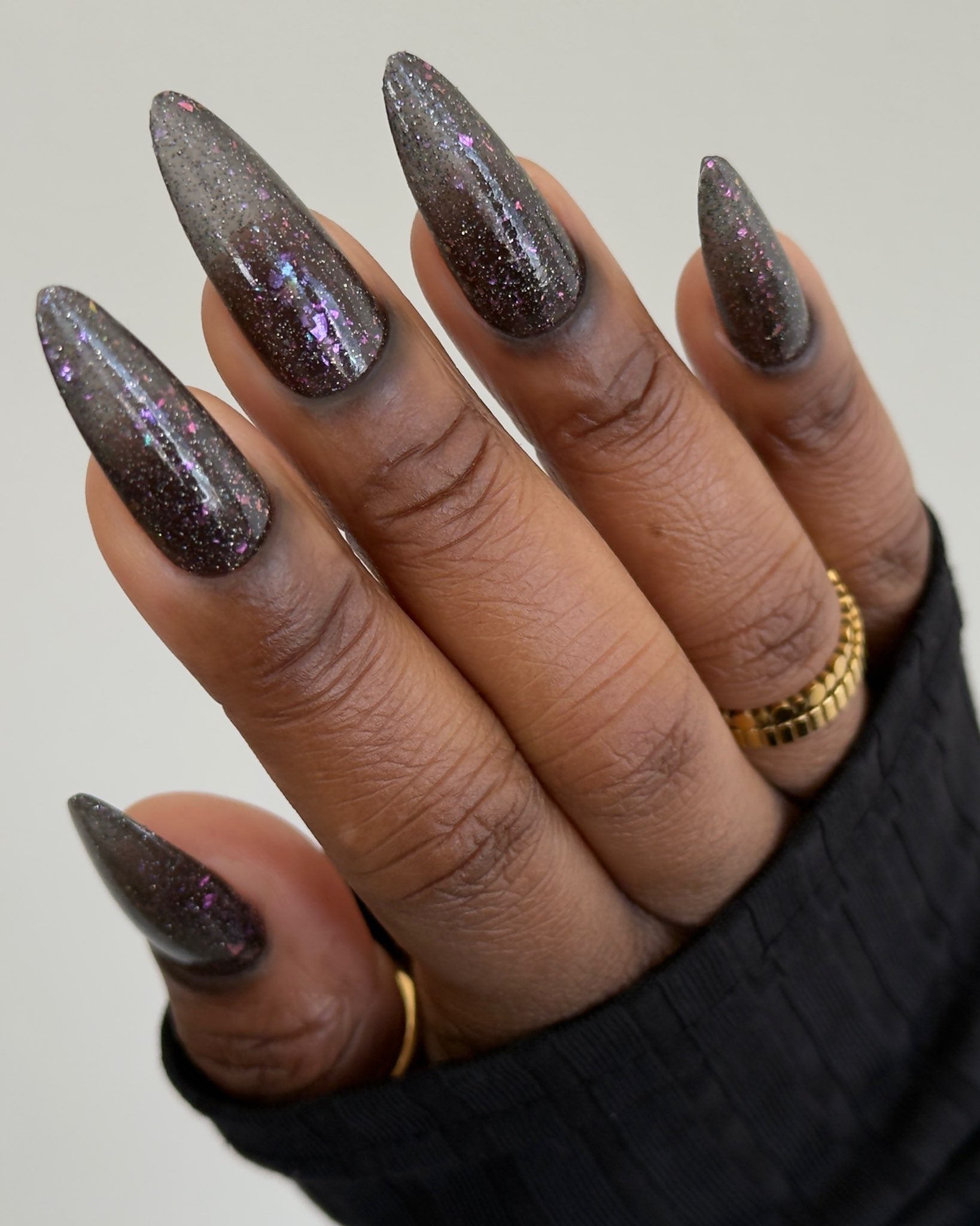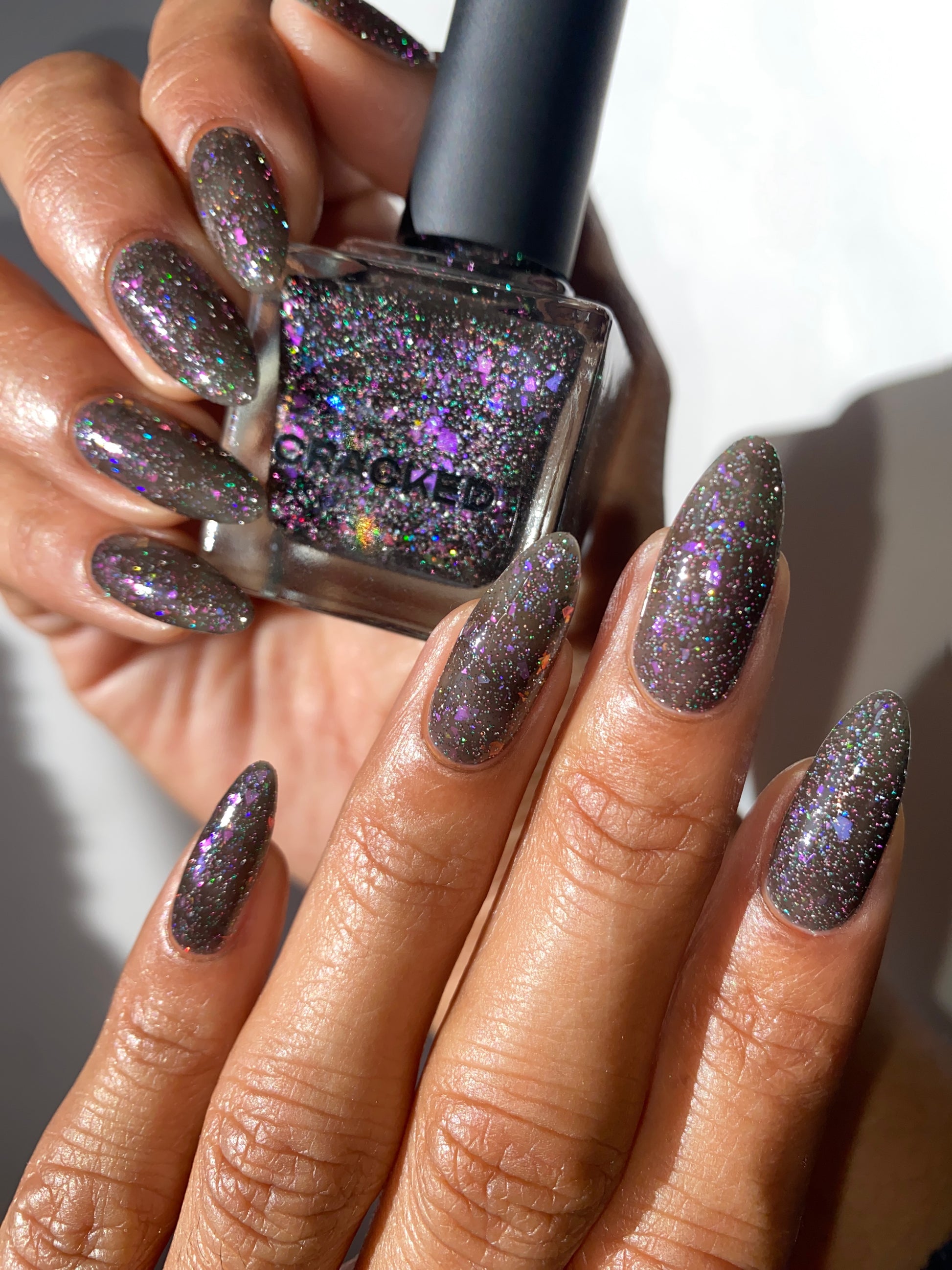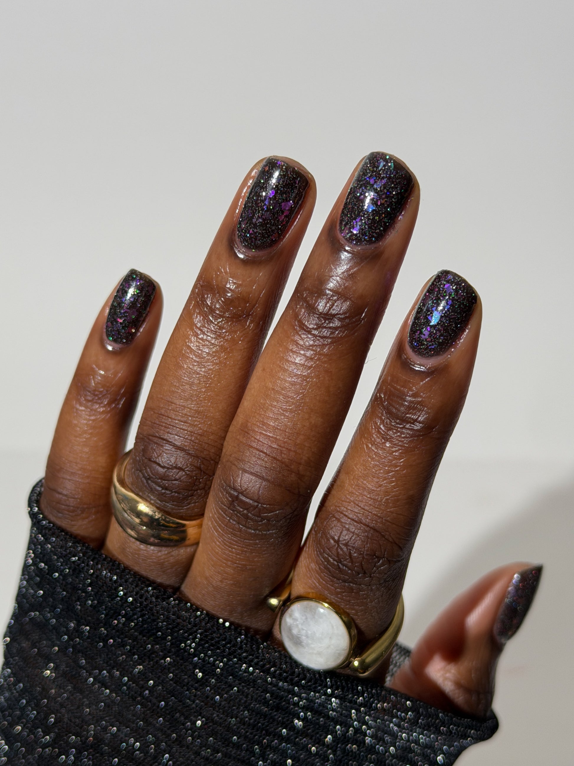 That's How The Light Gets In is a black jelly with pink, green and purple iridescent flakies and silver reflective glitters. Once one door closes, another opens. Find beauty and strength in our imperfections and not barriers.