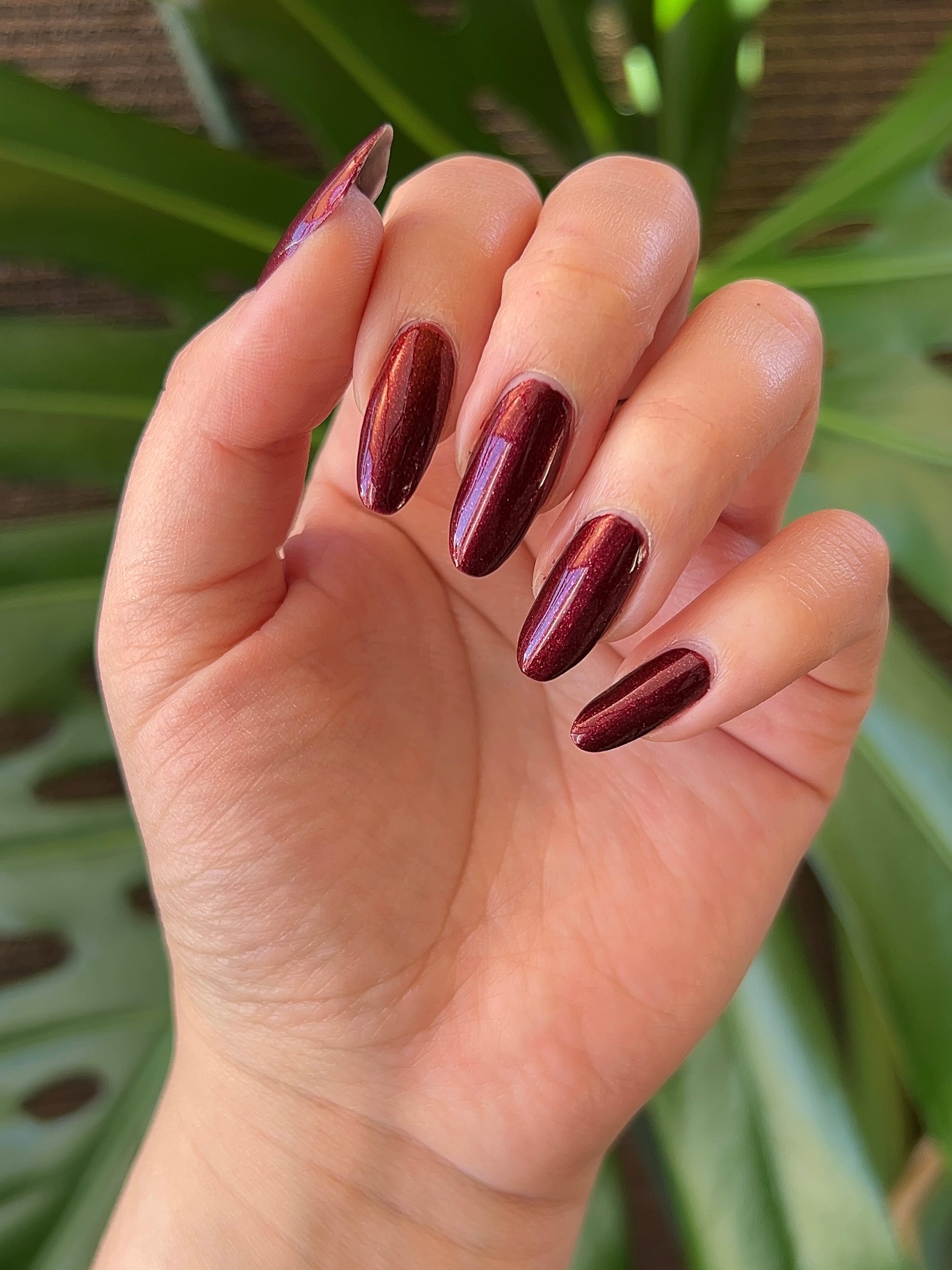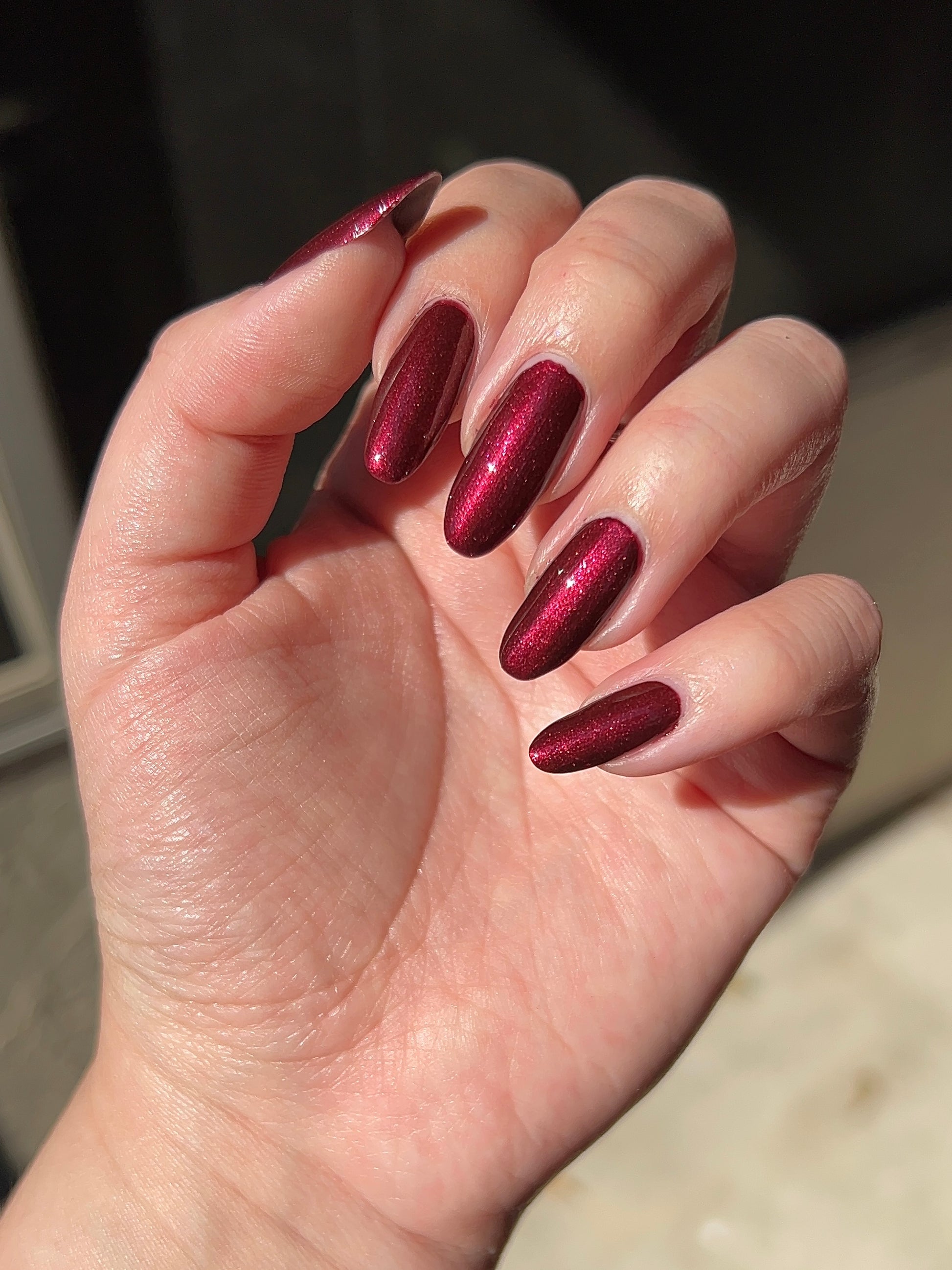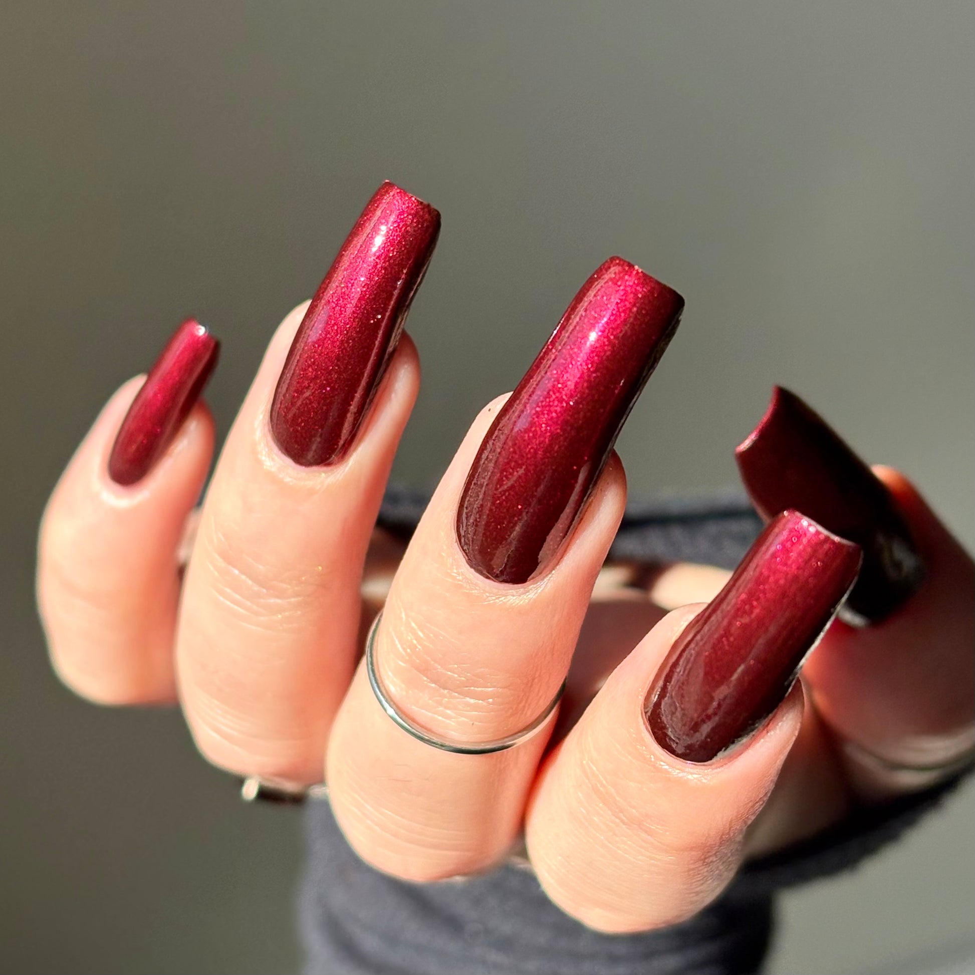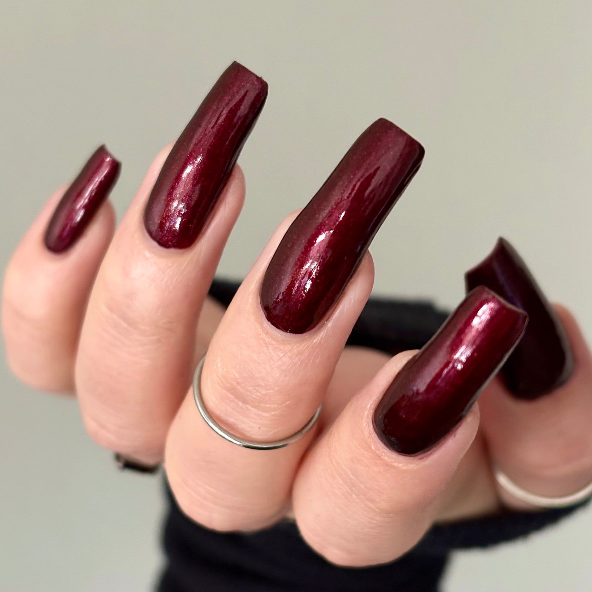 Vampire Juice Box is a decadent deep merlot red laced with the most delicate shimmer rich, moody, and dripping with spooky season energy.