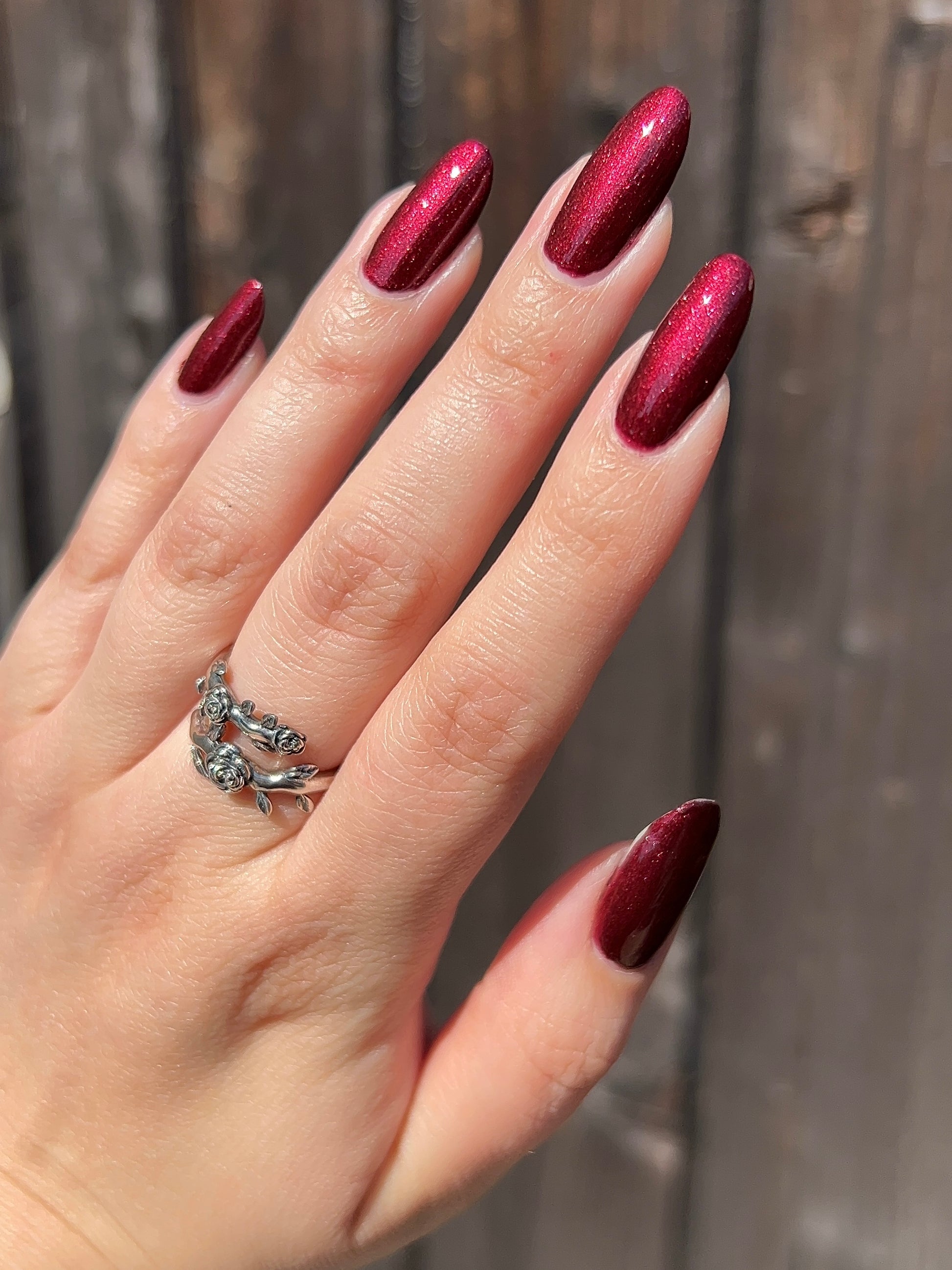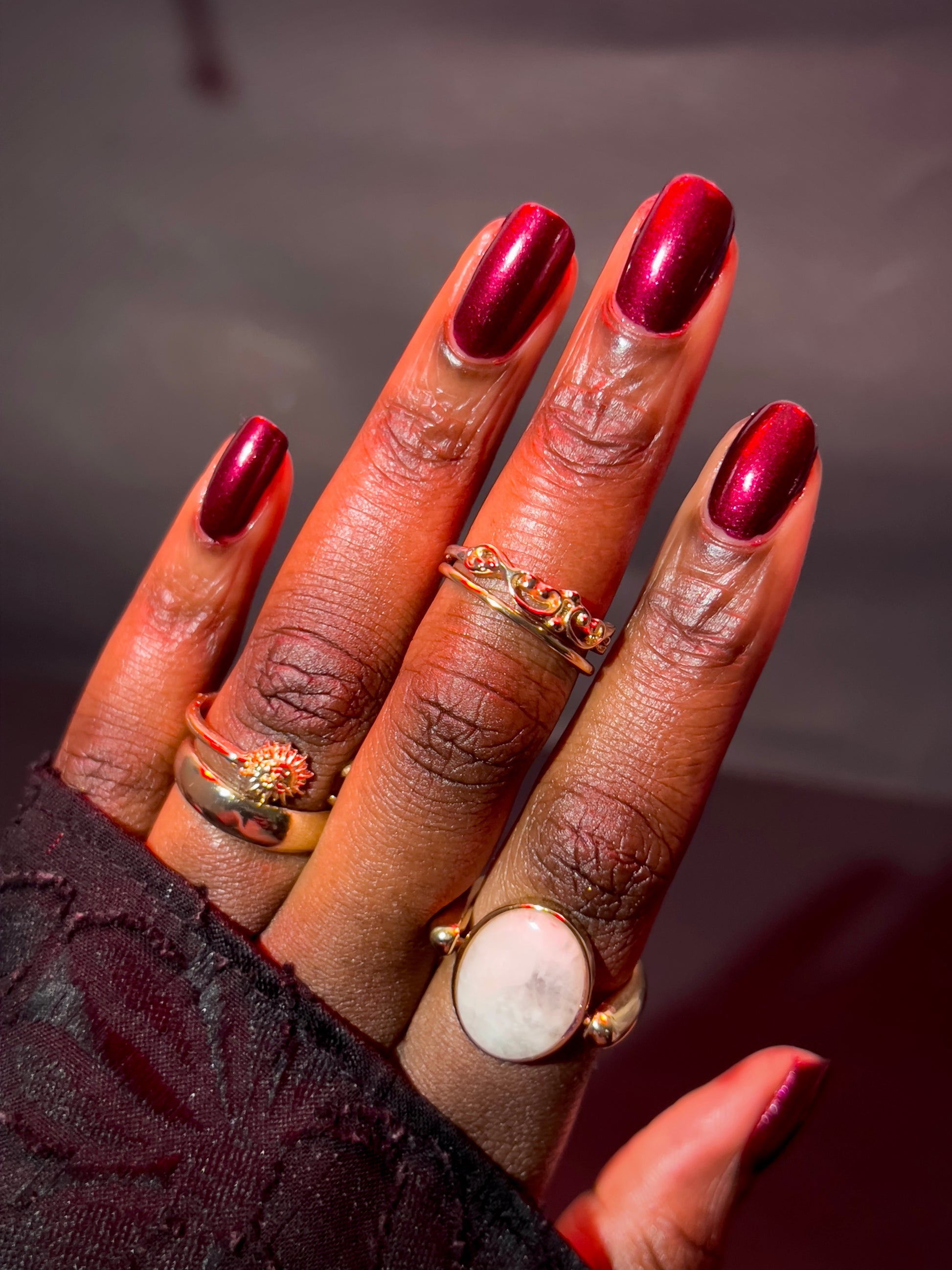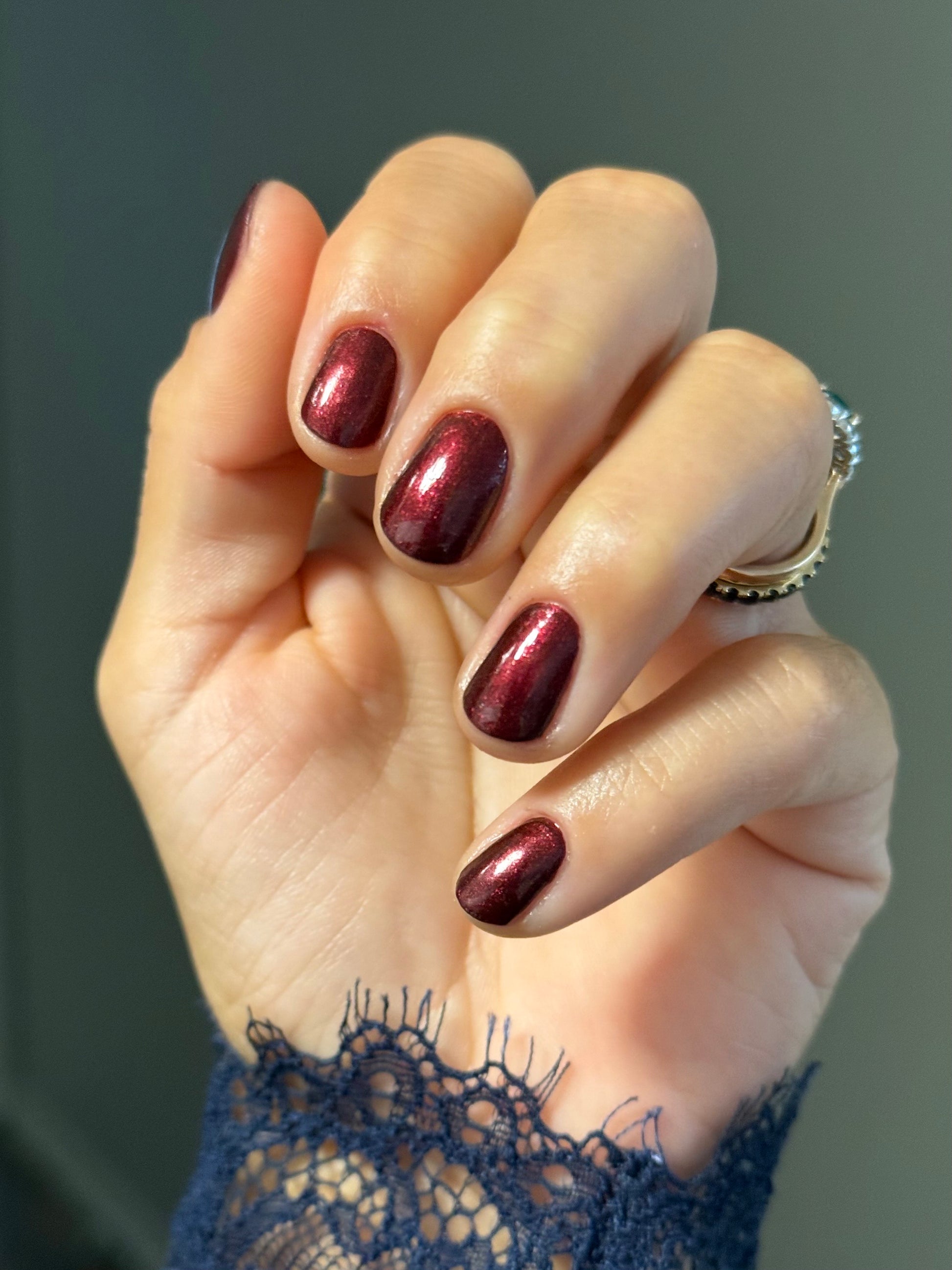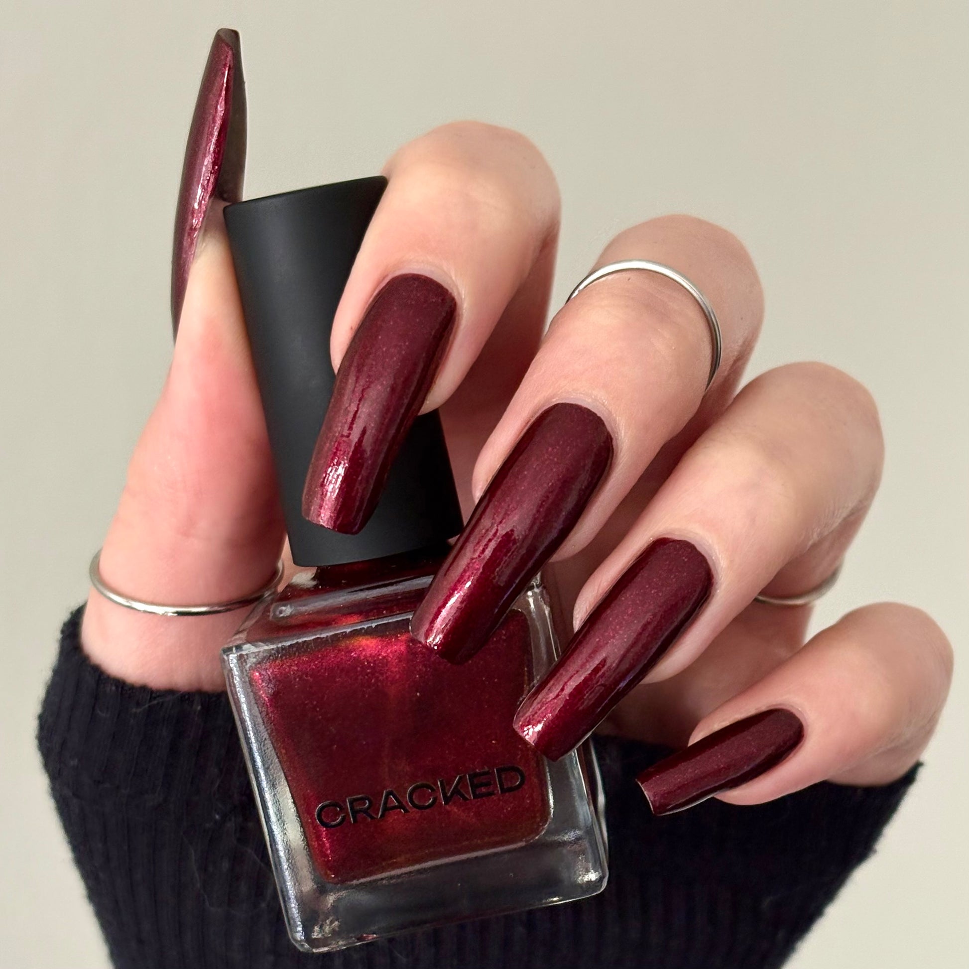 Vampire Juice Box is a decadent deep merlot red laced with the most delicate shimmer rich, moody, and dripping with spooky season energy.