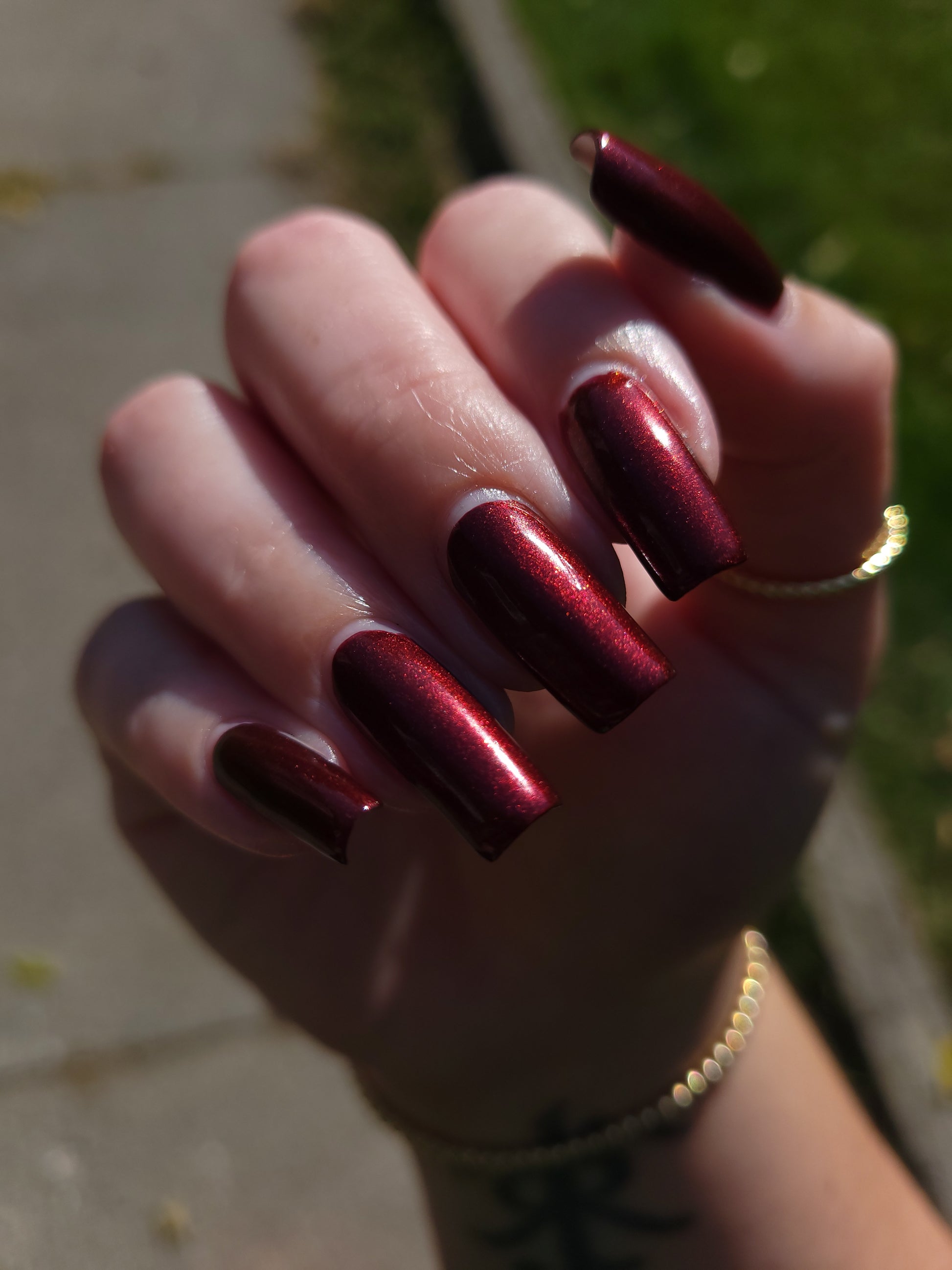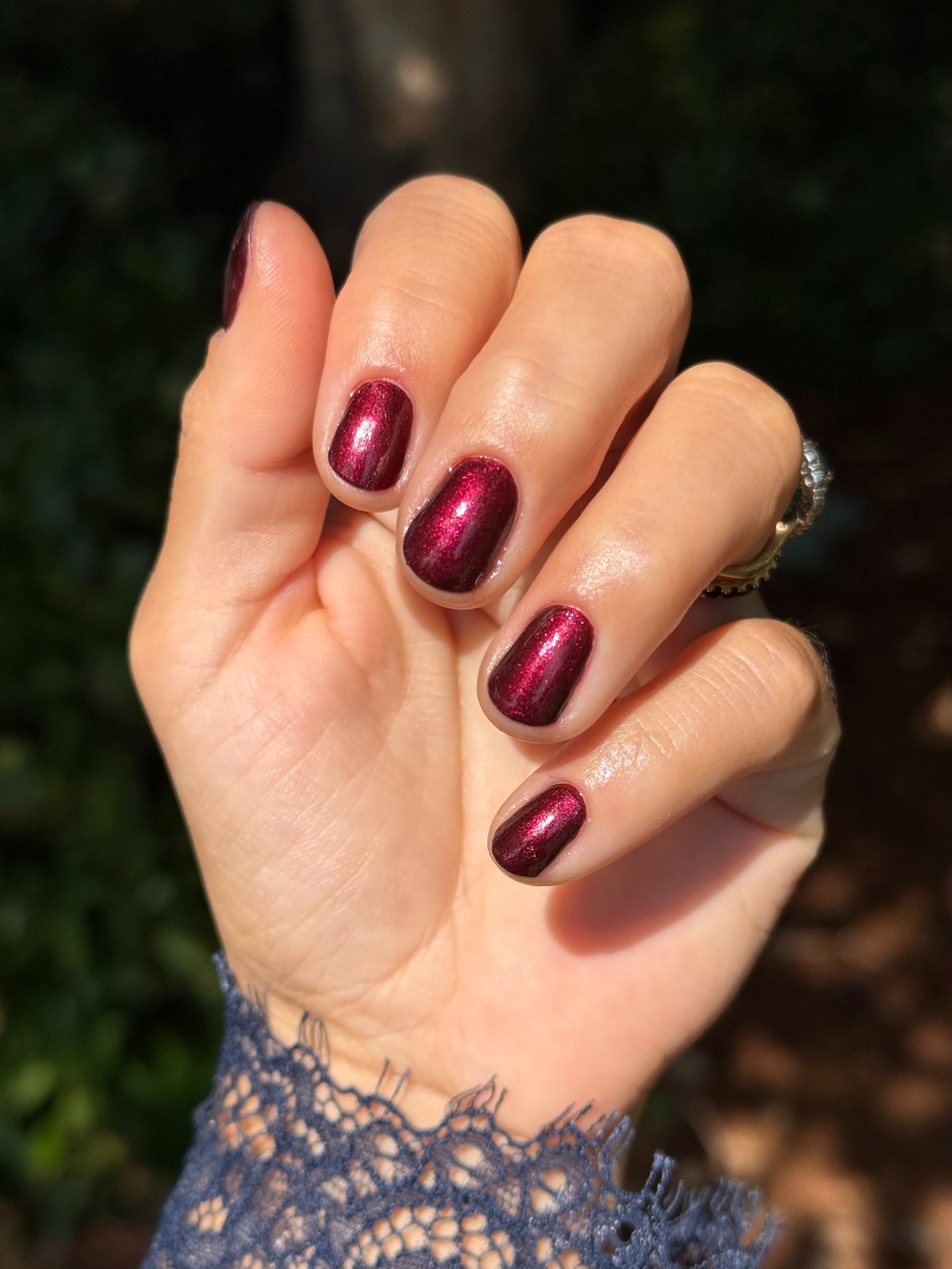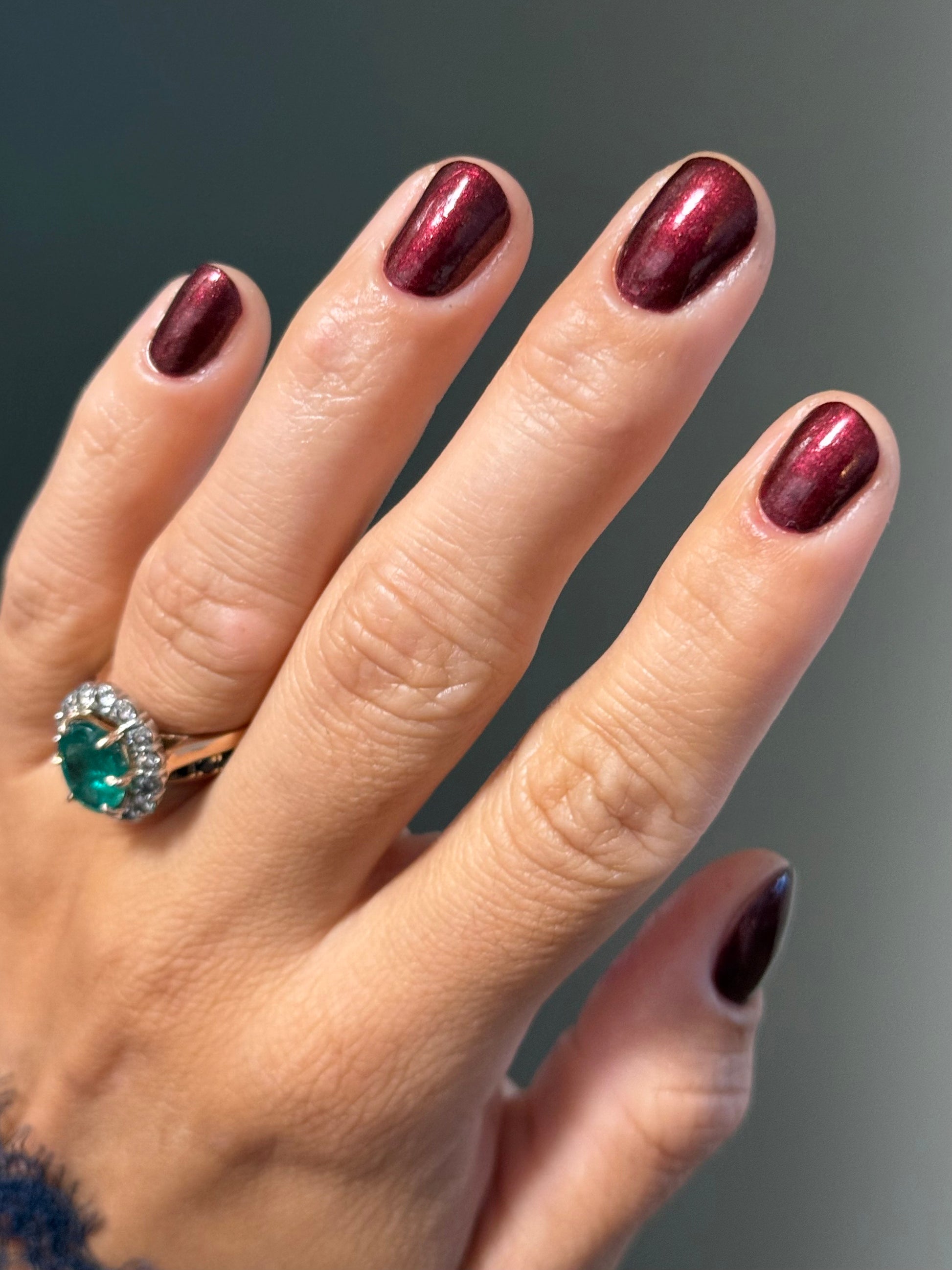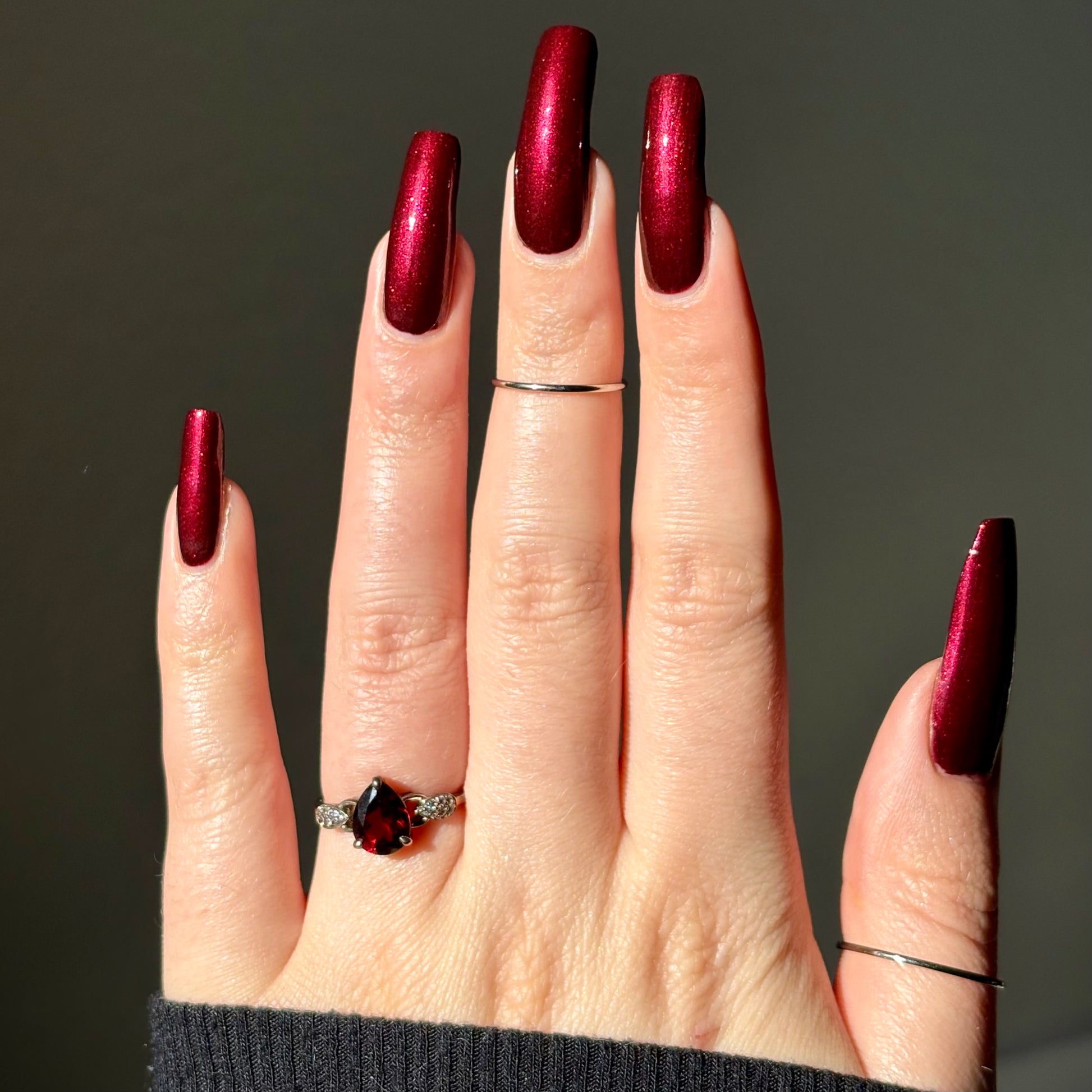 Vampire Juice Box is a decadent deep merlot red laced with the most delicate shimmer rich, moody, and dripping with spooky season energy.