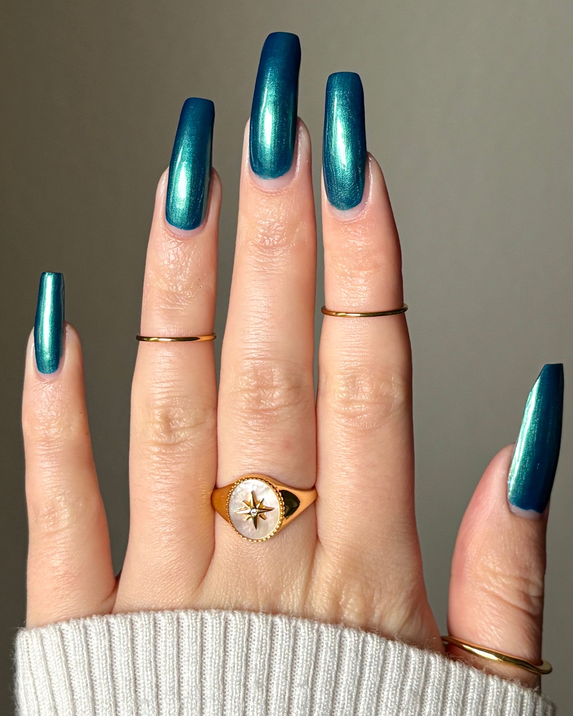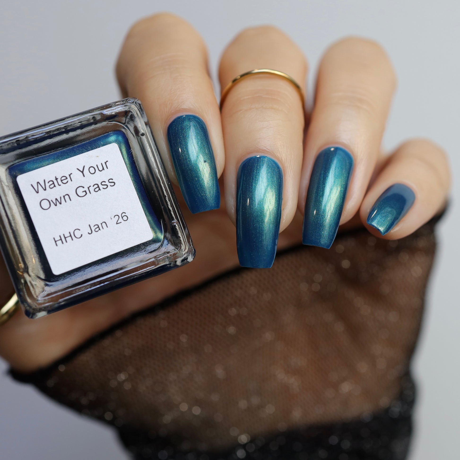 Sometimes you have to take the time and realize the grass isn't always greener on the other side. Continuing on with our "It's Not You, It's The Weather" theme for HHC. Water Your Own Grass is a blue base and metallic green and gold shimmers.