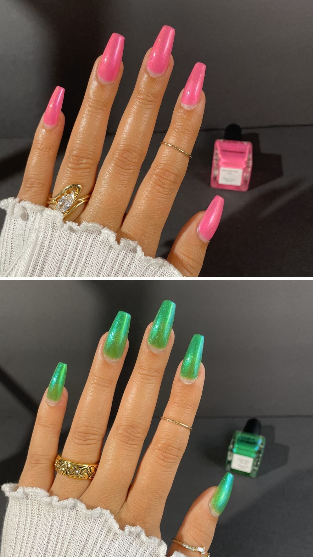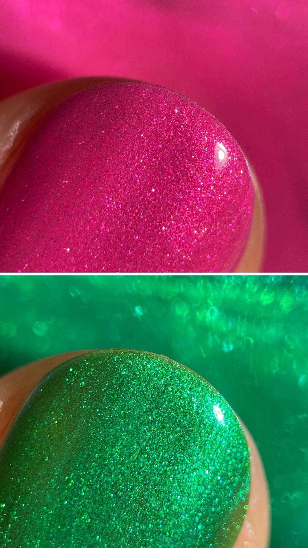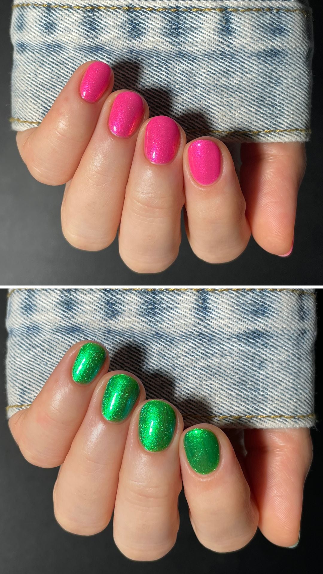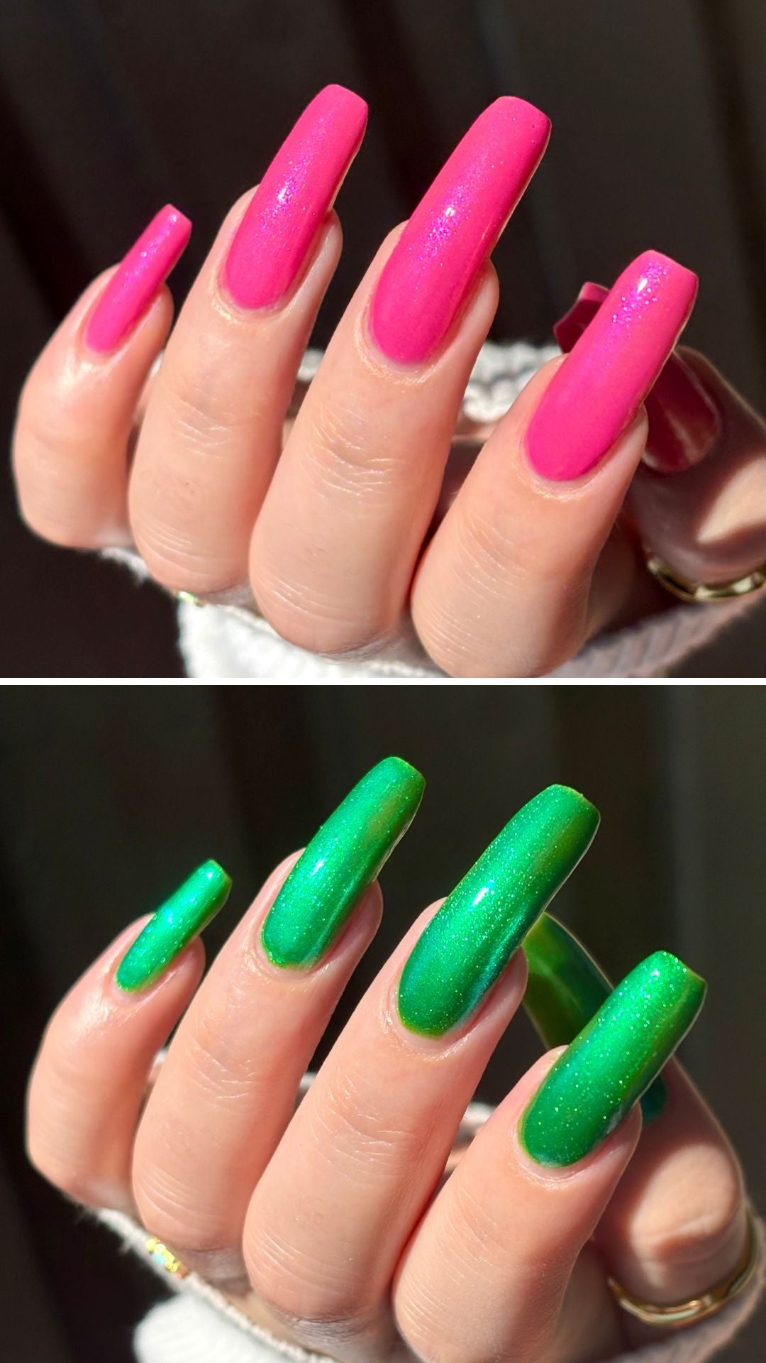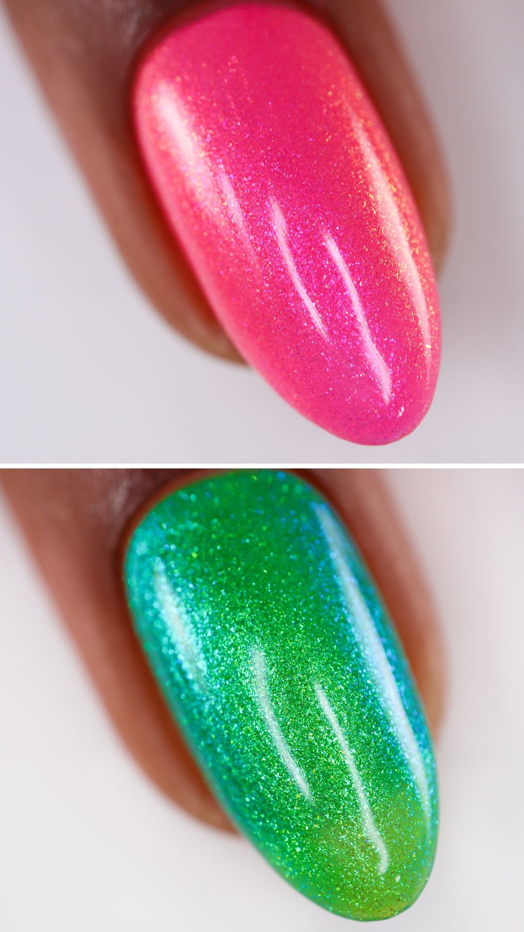 Get ready for the ultimate summer thirst trap. Cracked Polish and Lurid Lacquer have come together again for Watermelon Halves: a juicy, limited-edition duo made to turn heads and tempt hands. One half is a mouthwatering shimmering pink that drips with playful sparkle, the other a bold, eye-striking green that demands attention. Together, they’re ripe, refreshingly expected seeing as we both love to create green and pink colors. Launching this summer and going fast because good fruit doesn’t last forever.